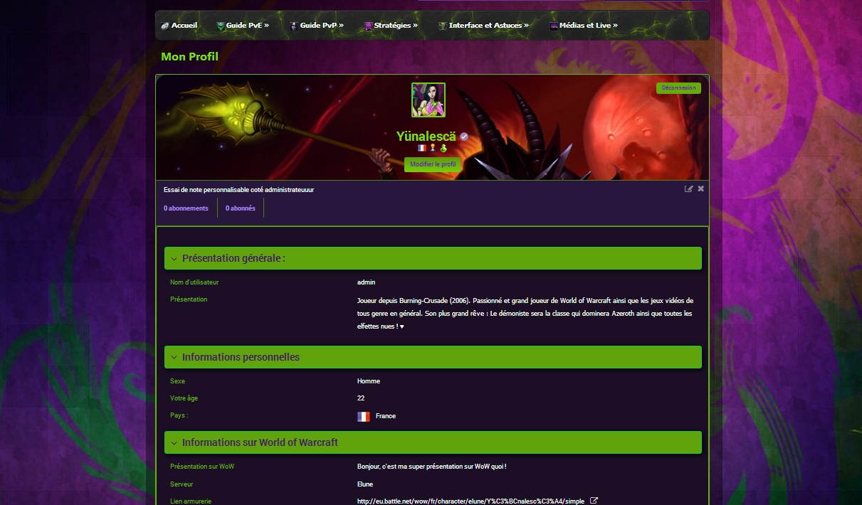 Un nouveau but : D'innombrables possibilités s'offrent à nous avec cette plateforme et nous avions décidé de mettre en valeur les autres classes. L'actualité sur les classes est notre point fort depuis le premier site consacré aux démonistes et nous souhaitons ainsi informer les autres joueurs. Cela nous demandera beaucoup de travail mais si vous souhaitez parler du druide équilibre où alors du chaman amélioration, n'hésitez pas à nous contacter pour vous prévoir quelques postes avant d'engager une nouvelle structure.