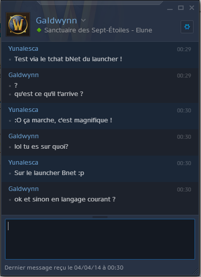 Après l'annonce de l'Alpha test de Warlords of Draenor, le launcher de battle.net prend un niveau supplémentaire. En effet, une nouvelle fonctionnalité vient d'être débloquée à l'instant puisqu'il s'agit de la messagerie instantanée tant attendu également par les joueurs. Vous n'aurez plus besoin de vous connecter à votre jeu préféré pour discuter avec vos amis puisque grâce à cet application officielle (télécharger ici) de battle.net, il est ainsi possible de voir ses amis connectés et d'y discuter quel que soit le jeu. Un outil extrêmement pratique ayant des options intéressantes comme le fait de pouvoir rajouter des amis en favoris.