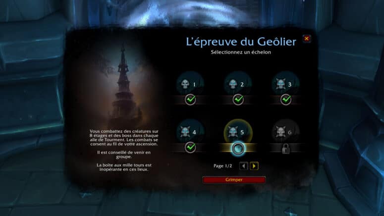 Vous pouvez retrouver l'aperçu de l'épreuve du Geôlier dans la tour de Tourment au coeur de l'Antre.