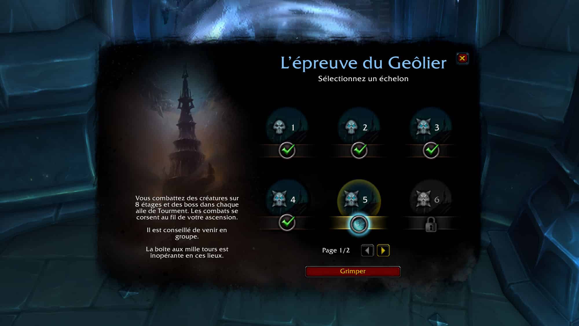 - Cet accès est lié au compte Blizzard pour participer à l'épreuve du Geôlier sur tous les personnages.