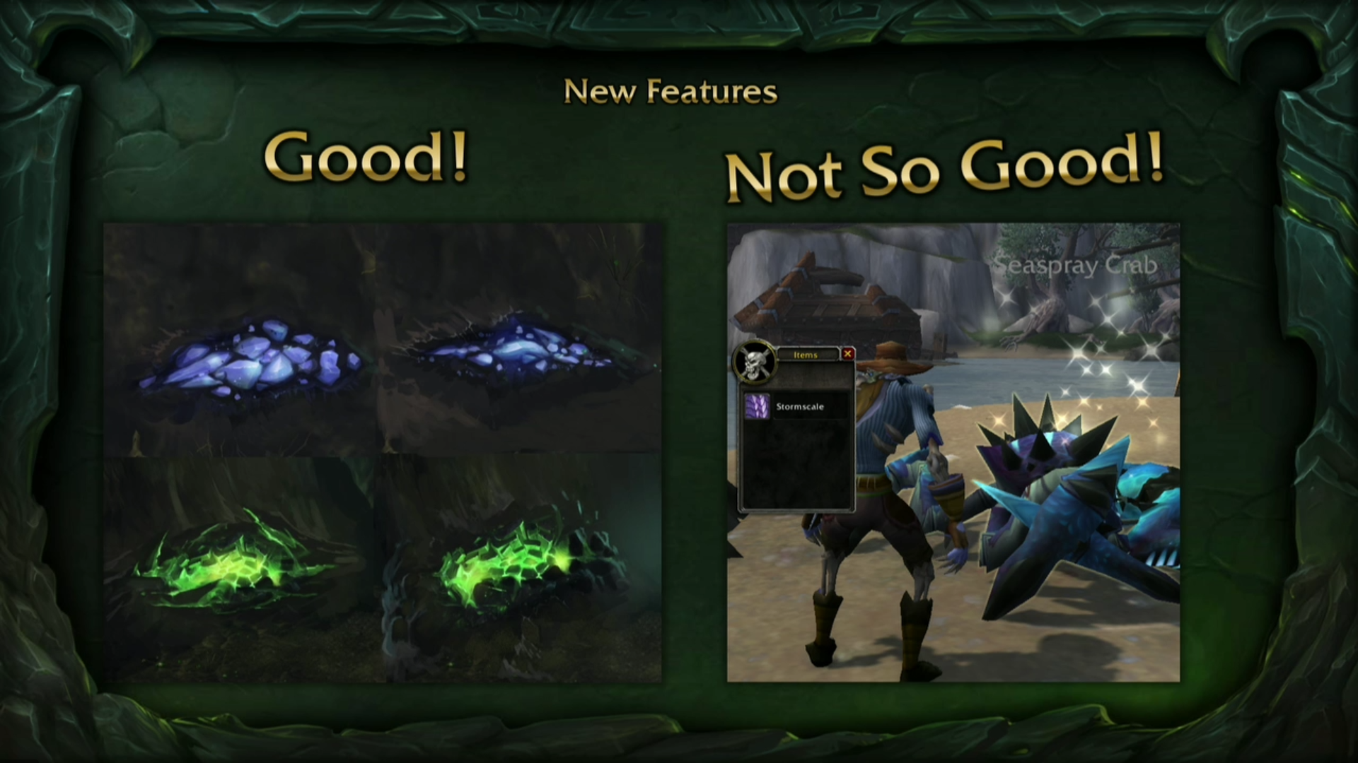 - L'enclave de Mar'gos à Dalaran n'était pas prévue initialement, l'idée est venue grâce au bug qui a permis de créer des raids dans le fief pour récupérer la tortue de monte plus rapidement. Les développeurs ont trouvé que ceci a renforcé l'aspect social et ils ont apprécié l'idée de se regrouper pour pêcher.