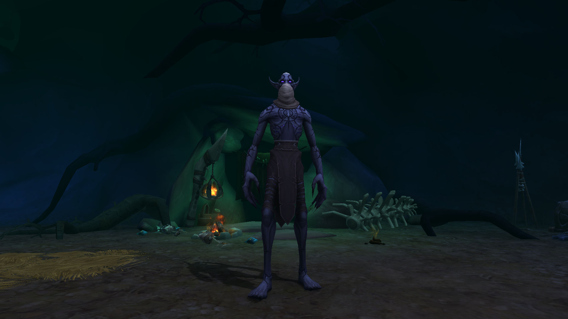 J’im le Flétri : banni du sanctuaire de Suramar, ce souffrenuit errait sur la côte. Son corps se détériorait, sa santé mentale le fuyait. Il allait perdre toute conscience de son être quand il sentit une énergie émaner d’une grotte proche. Il y trouva un éclat de pouvoir du Puits de la nuit, qui aujourd’hui encore le nourrit et le renforce, mais courbe aussi le temps et l’espace alentour. Son esprit n’a pas résisté, et plus personne n’entre dans sa grotte. Même les idiots savent ce qu’il leur en coûterait.