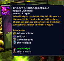 La fausse prochaine mise à jour 6.1.4 de Warlords of Draenor annonce le remplacement du grimoire de sacrifice/synergie pour le grimoire de pacte démoniaque. Ce talent permet de remporter des effets bénéfiques selon certaines interactions avec vos démons.
