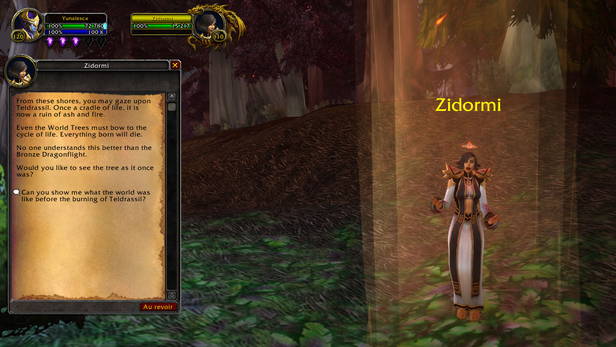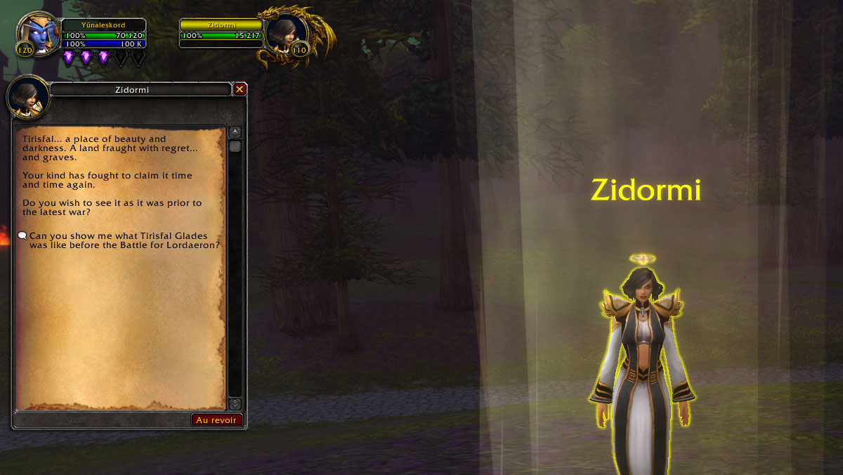 Depuis plusieurs événements importants dans l'histoire comme l'attaque de Theramore, la porte des ténèbres par la Horde de fer, ou la plaie de Silithus, Blizzard a l'habitude de placer un seigneur temporel avec Zidormi pour revenir dans le passé. Marquée sur la carte du monde, les joueurs peuvent alterner la région avec une vision du passée ou revenir dans le présent pour constater les ravages effectués par les deux factions.