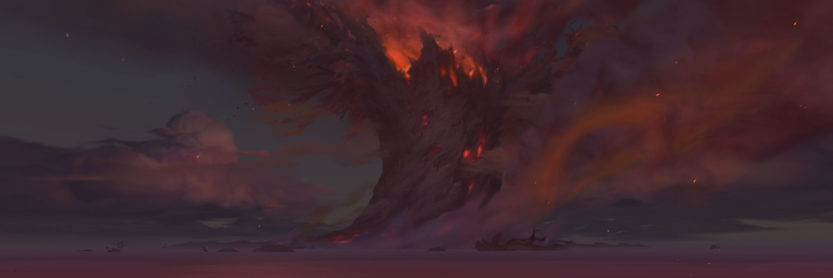 L'arbre-monde de Teldrassil est en flammes suite à l'attaque menée par les membres de la Horde pour sonner le glas à l'Alliance. Depuis Sombrerivage, les joueurs peuvent constater au loin les terres dévastées de Darnasus avec une ambiance totalement différente puisque le ciel est opaque et des cendres s'abattent dans la région.