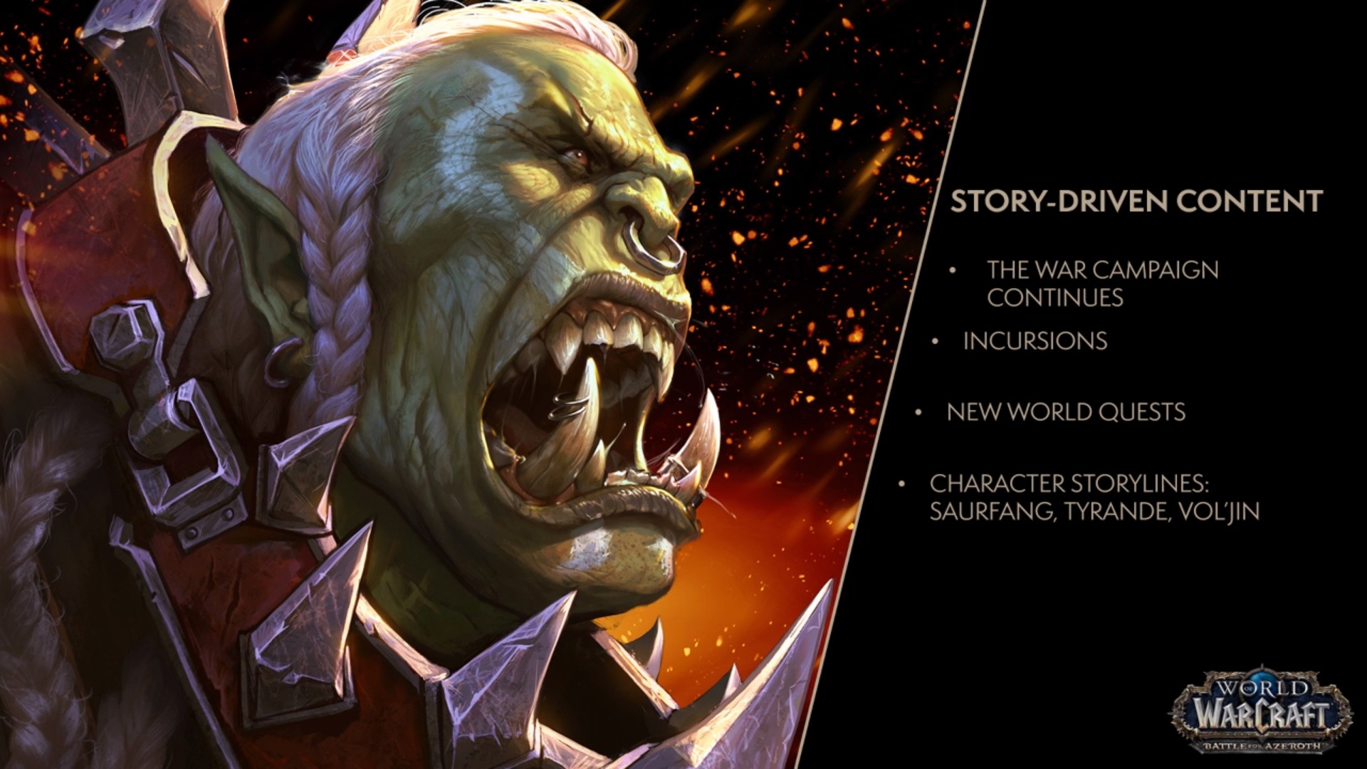 - Histoire : suivez une nouvelle histoire sur les trois protagonistes Saurcroc, Tyrande, Vol'jin