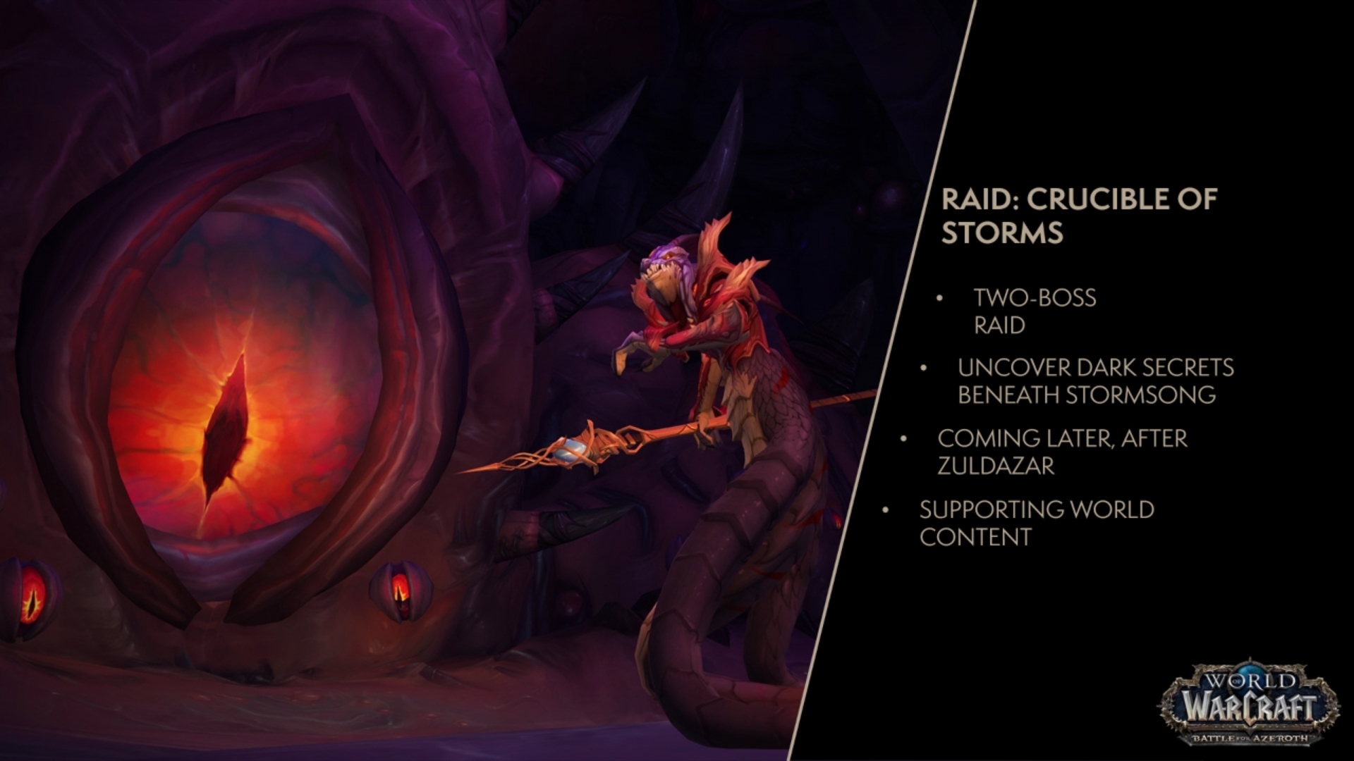 - Mini-raid (patch 8.1.5) : Creuset des tempêtes contre deux boss unique sous la Vallée Chantorage
