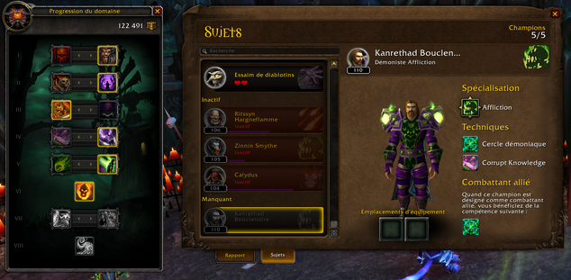 La campagne de domaine de classe se poursuit avec des nouvelles quêtes à réaliser afin d'obtenir la récompense ultime de la monture de classe. Au cours de votre progression, vous pouvez toutefois débloquer un nouveau champion qui viennent s'ajouter dans votre domaine de classe pour contrecarrer les plans de la Légion ardente. Ces nouveaux héros sont des combattants alliés qui peuvent être assignés pour vous accompagner sur les Îles brisées avec des compétences qui dépendent de votre spécialisation.