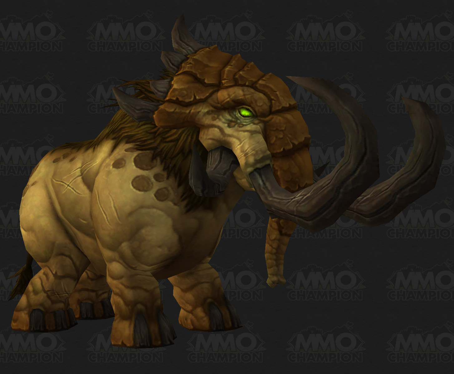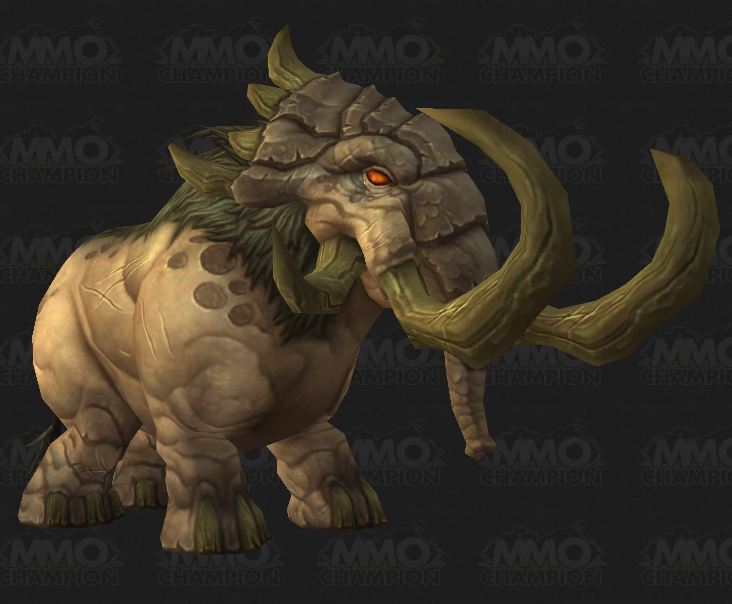 Dotés d’une taille considérable et pouvant compter sur le soutien de leur troupeau, les majestueux elekk broutent pacifiquement l’herbe des plaines de Draenor sans se soucier le moins du monde des prédateurs. Les explorateurs draeneï sont arrivés à la conclusion que ces animaux ne représentent aucun danger tant que leurs petits ou leur approvisionnement en eau ne sont pas menacés. Leur endurance en fait le moyen de transport favori des Draeneï qui apprécient également leur capacité à se défendre en chargeant ou en écrasant leurs assaillants. Des rumeurs tenaces affirment que les orcs du clan Sire-Tonnerre tourmentent et corrompent des elekk terrifiés qu’ils recouvrent ensuite de plaques d’armure pour en faire d’abominables armes de guerre capables de dévaster les rangs de leurs ennemis. Alors, prenez garde !