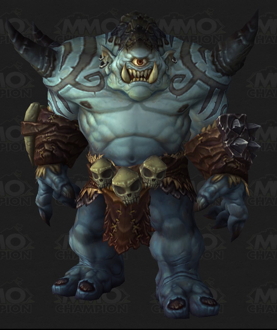Ogres, gronns et magnarons, partagent tous le même lignage, les féroces ogrons étant le chaînon manquant entre les sauvages gronns et leurs plus petits mais plus nombreux enfants. L’esprit lent, ils observent leur environnement de leur œil unique, jauni et humide. Trop stupides pour désobéir aux ordres, mais assez grands et dangereux pour discipliner les ogres, les ogrons sont le bras armé des chefs ogres, des seigneurs de guerre jusqu’à l’empereur lui-même. Tout champion d’Azeroth cherchant à renverser le pouvoir des ogres ferait bien de se préparer à rencontrer au moins un ogron sur son chemin.