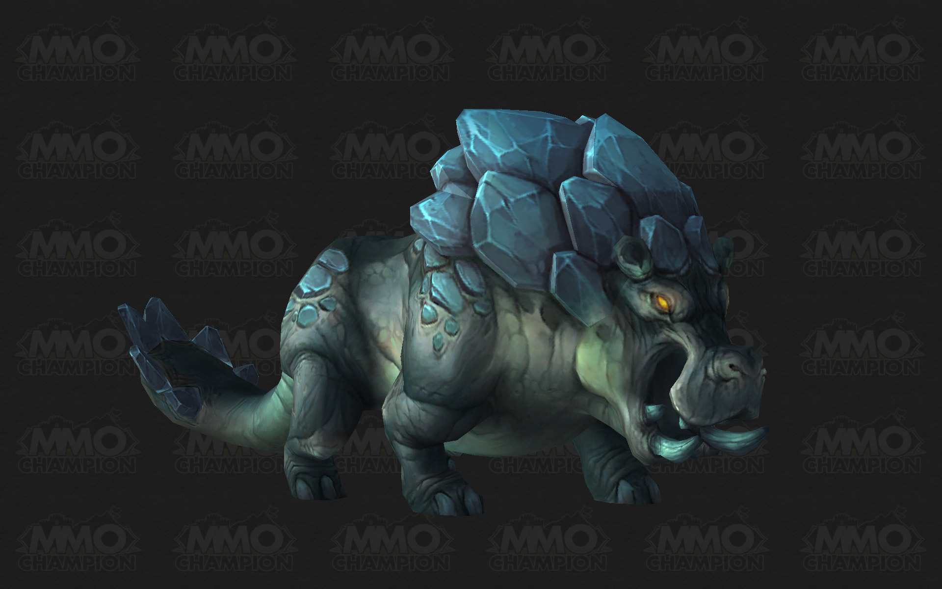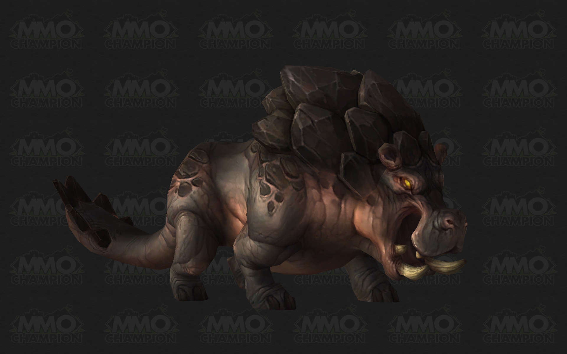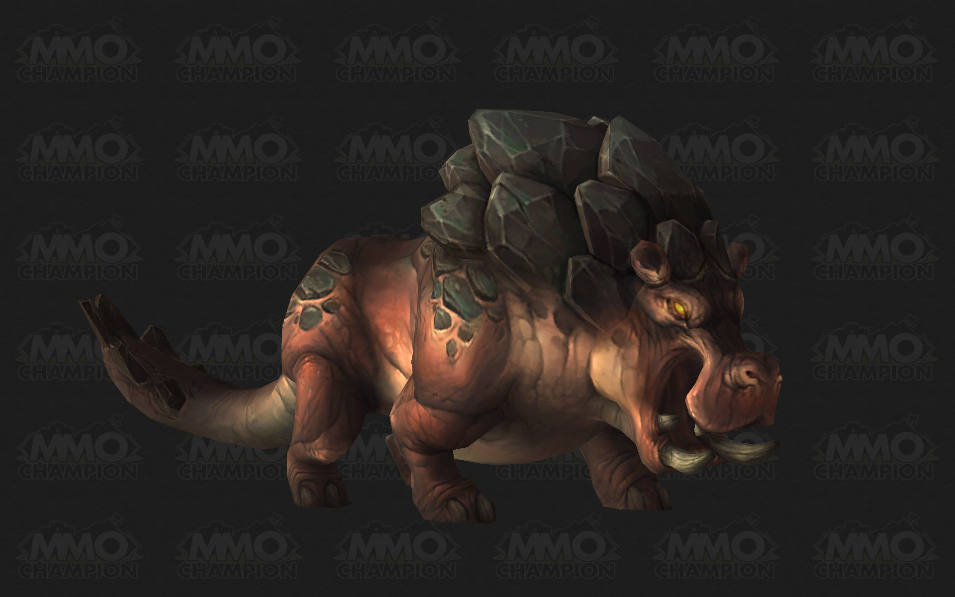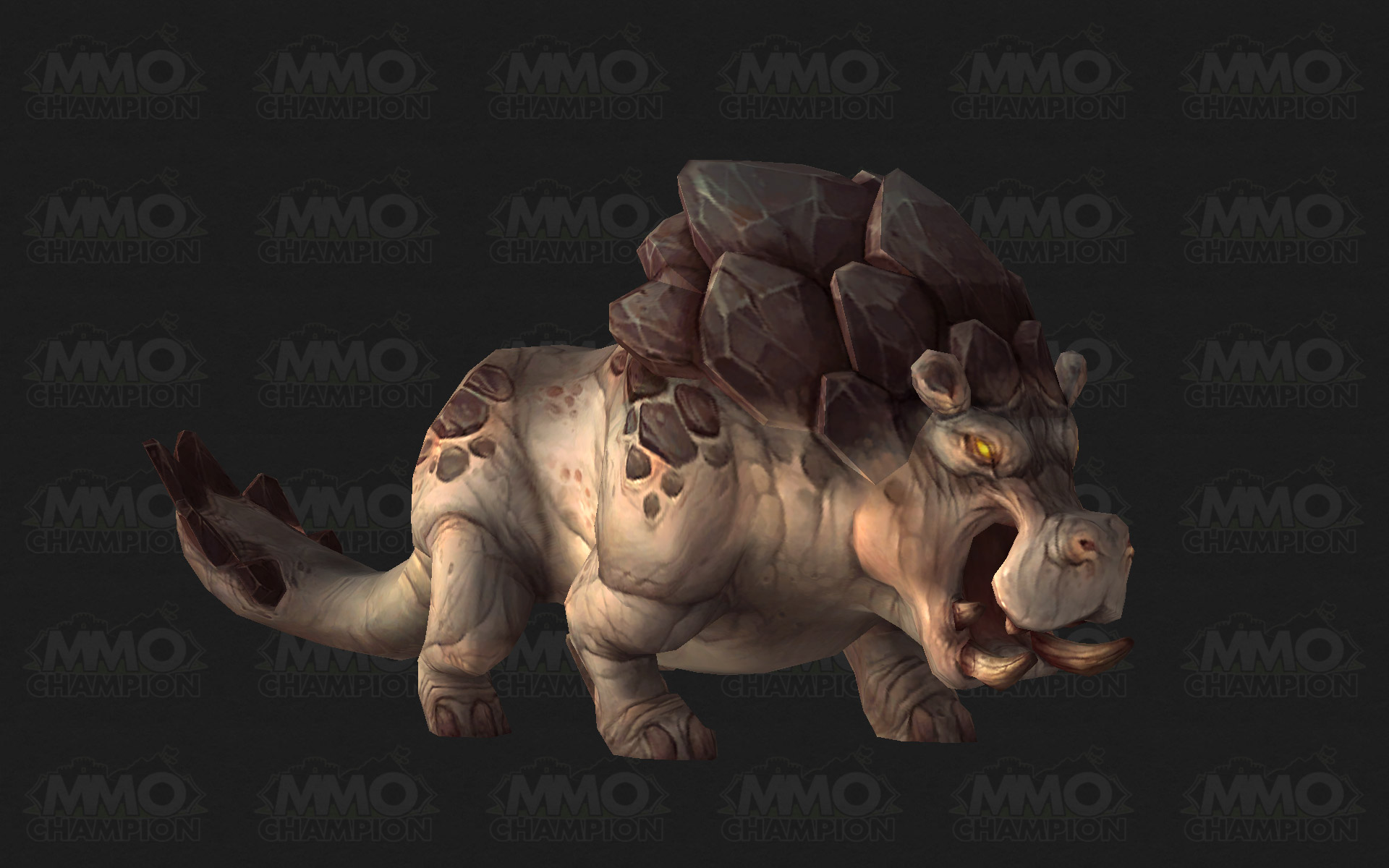 Les aventuriers sont souvent abusés par l’apparente placidité des potamodontes. Affichant un naturel paisible, ces animaux peuvent cependant devenir féroces lorsqu’on les dérange, et il n’est pas rare que les imprudents se fassent charger par deux tonnes de muscle et de graisse lancés à la vitesse d’un tram emballé. Capables d’encaisser une quantité de dégâts qui ne cesse de surprendre les Rangari, ils fréquentent souvent les eaux peu profondes que les enfants draeneï apprennent très tôt à éviter. Leur peau rocailleuse caractéristique remonte probablement à la lointaine préhistoire draeneï, à l’époque où les créatures de pierre tentaient d’imposer leur suprématie sur la flore chaotique de la région. Les explorateurs en quête de trophées feraient donc bien de garder à l’esprit que les potamodontes possèdent une armure naturelle des plus résistantes et qu’ils ont tendance à charger sans crier gare.