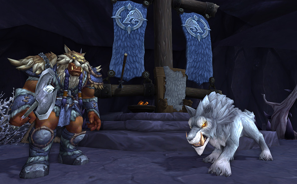 Seuls les plus robustes peuvent survivre au climat inhospitalier de la crête de Givrefeu. Les solides loups de givre comptent parmi les natifs de la région. Le clan orc Loup-de-Givre leur doit son nom et en a fait son symbole. Les orcs et leurs compagnons loups combattent et chassent ensemble comme s’ils faisaient partie de la même meute.