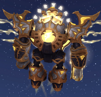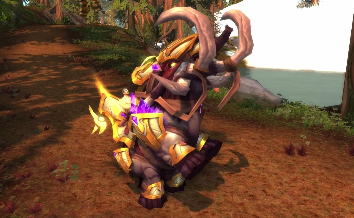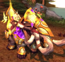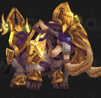 La nouvelle monture de la mise à jour 7.3 : Gangrebroyeur béni, est le compagnon favori d'Alleria et Turalyon sur Argus pour son prestige pour les draeneï. Cette monture se récupère dans la cache parangon lorsque vous êtes exaltés auprès des armées de la Lumière avec