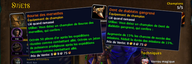 Les équipements de champion légendaire ci-dessous affecte les expéditions réussies avec un combattant allié :