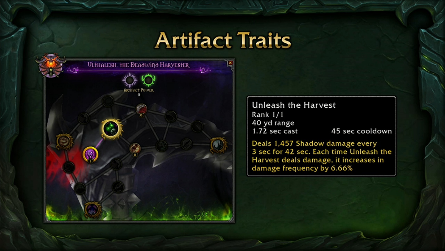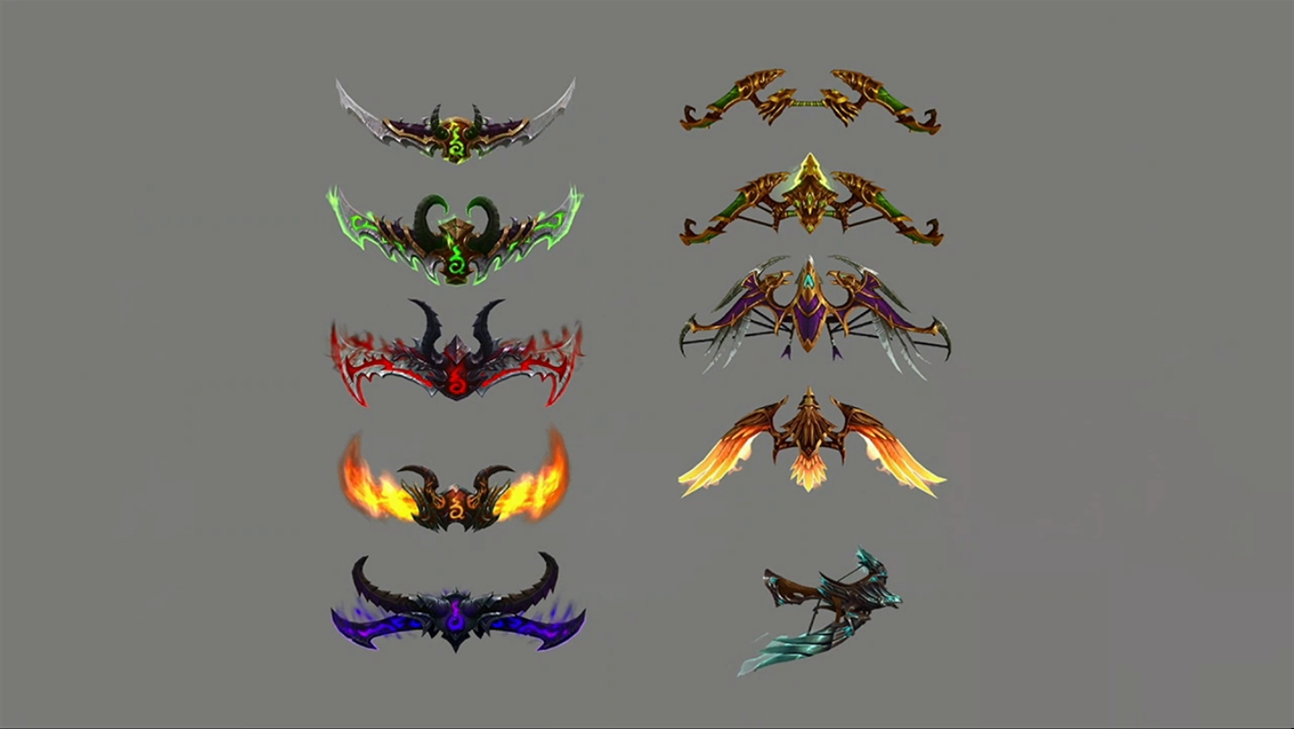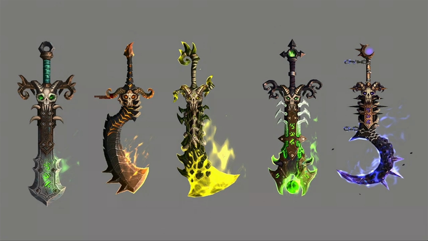 Parmi les nombreuses armes prodigieuses qui vont faire leur apparition dans Legion, la faux pour démoniste Affliction baptisée faux de Deuillevent représente parfaitement la manière dont fonctionnent les armes prodigieuses : vos armes engrangent de la puissance prodigieuse et possèdent un véritable arbre de traits prodigieux à débloquer grâce à cette ressource. Ces traits comportent plusieurs rangs, ce qui permet à votre personnage de poursuivre sa progression au-delà du niveau 110. Un nouveau type d’objet, les reliques, sera également ajouté. Ces reliques s’insèrent dans les armes prodigieuses pour augmenter leur niveau d’objet et améliorer les rangs de différents traits. De plus, chaque arme se décline en plusieurs modèles et couleurs, ce qui confère une incroyable diversité au système.