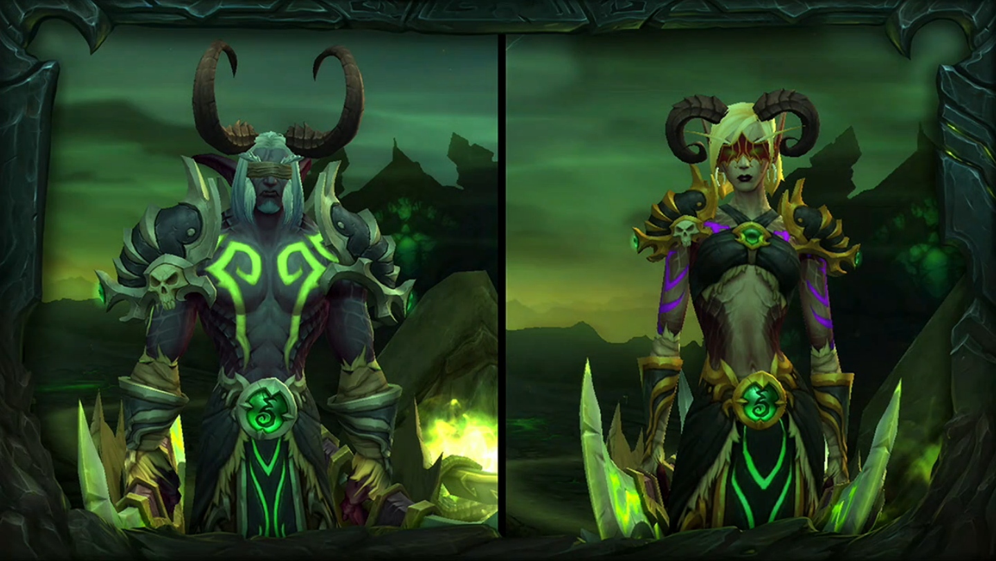 Lorsque vous aurez terminé les quêtes d'introduction sur la zone de départ : vous devrez alors choisir votre allégeance à une faction : Horde ou Alliance de la même manière que les Pandarens. Votre race sera automatiquement convertie en elfe de la nuit où elfe de sang selon votre choix. Par la suite, vous pourrez retourner sur Mardun puisqu'il s'agit de votre futur domaine de classe. Vous pouvez même communiquer avec la faction adverse avec la langue démoniaque !