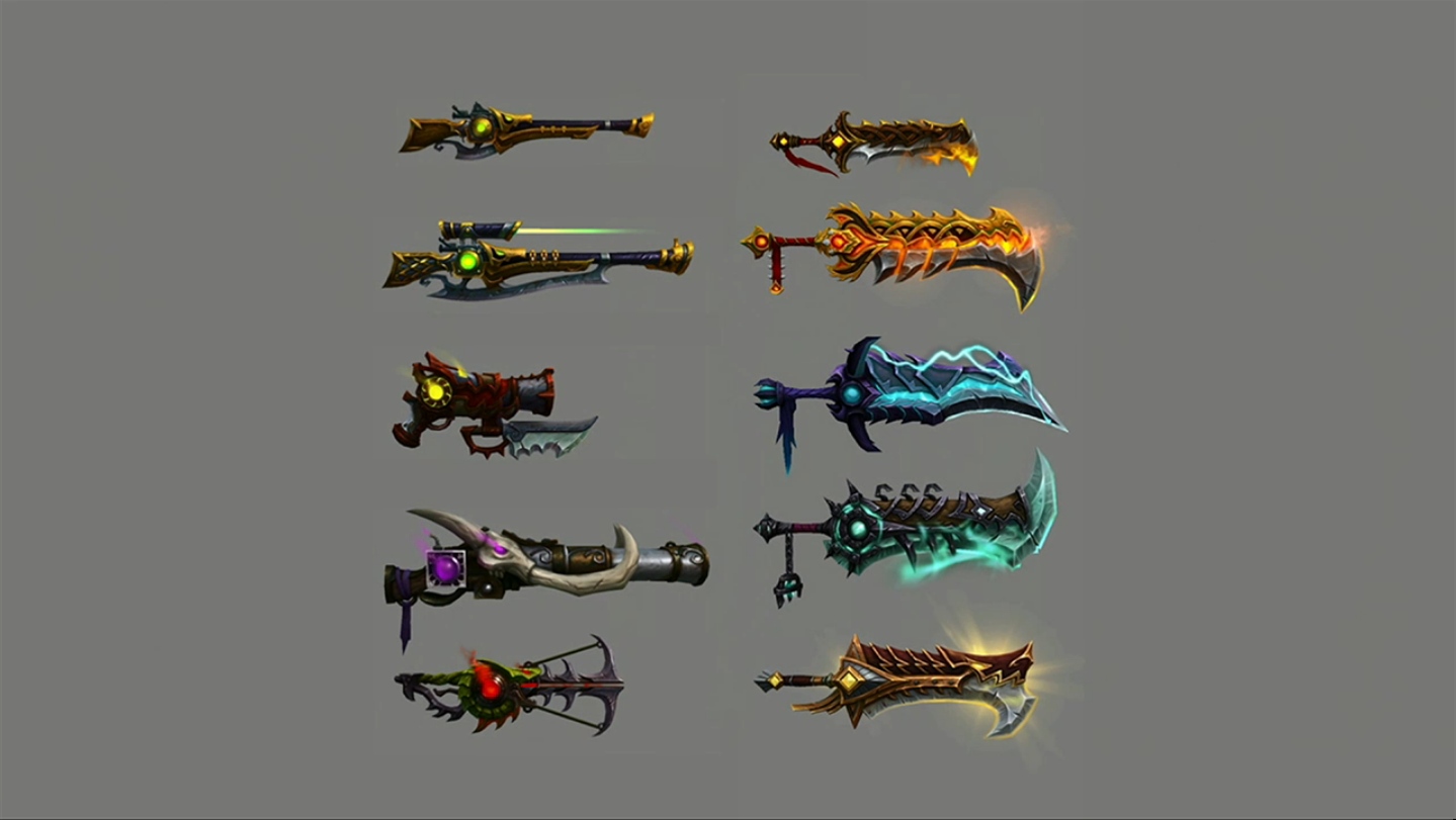 De plus, il existe une variété de modèles pour votre arme prodigieuse puisque vous aurez un outil de personnalisation pour sélectionner un modèle où une variation de couleur, mais, vous ne les aurez pas gratuitement puisque pour les débloquer : vous devrez réaliser des quêtes, des donjons, enfin du contenu majeur pour vous donner l'envie d'avoir plusieurs modèles et avoir un intérêt de réaliser une tâche. Les variations de couleur seront principalement débloqués par des hauts-faits comme vaincre un champion. Néanmoins, si vous n'êtes pas satisfait de l'allure de votre arme prodigieuse : il sera possible de la transmogrifier en une autre arme, mais l'inverse est impossible.