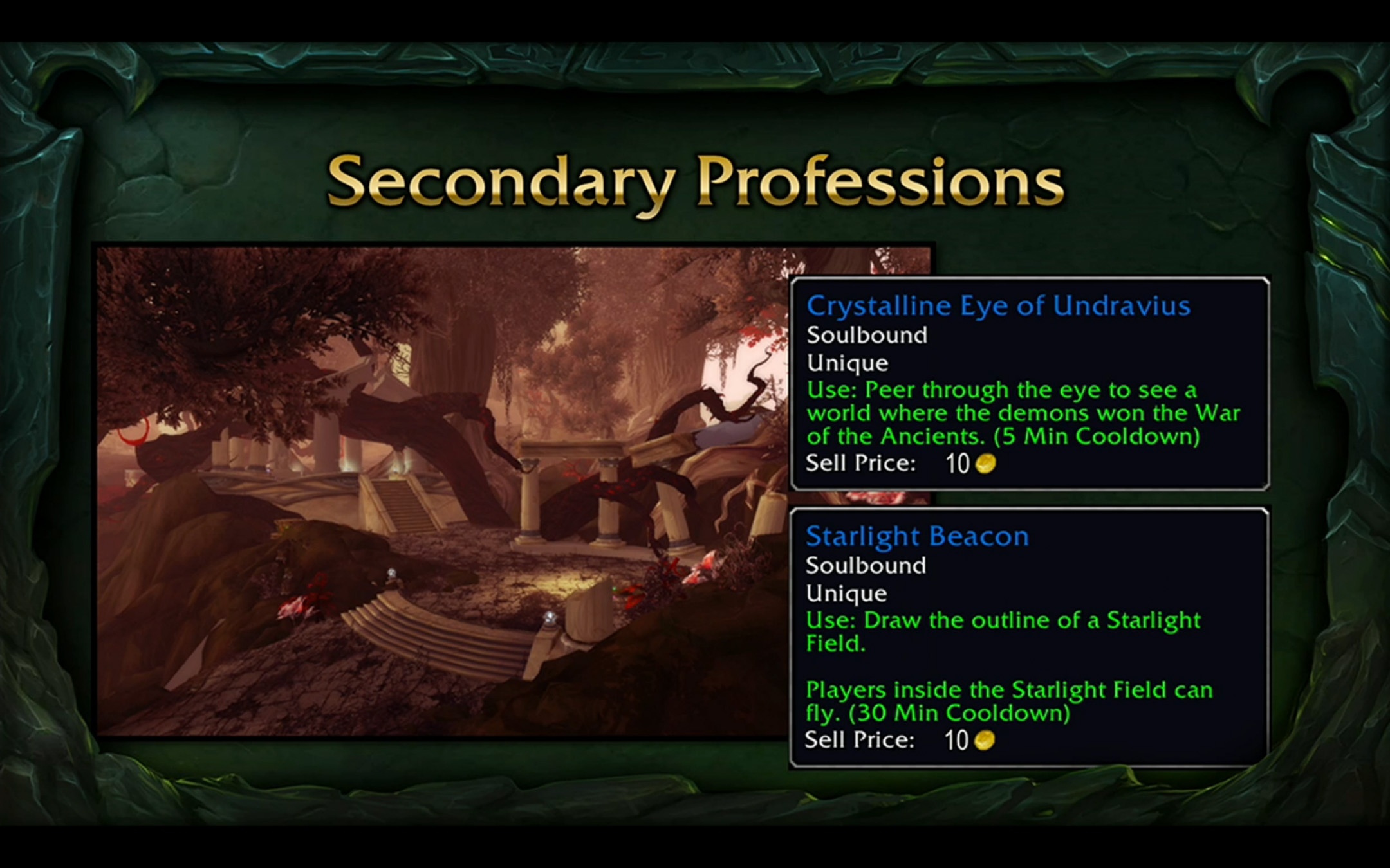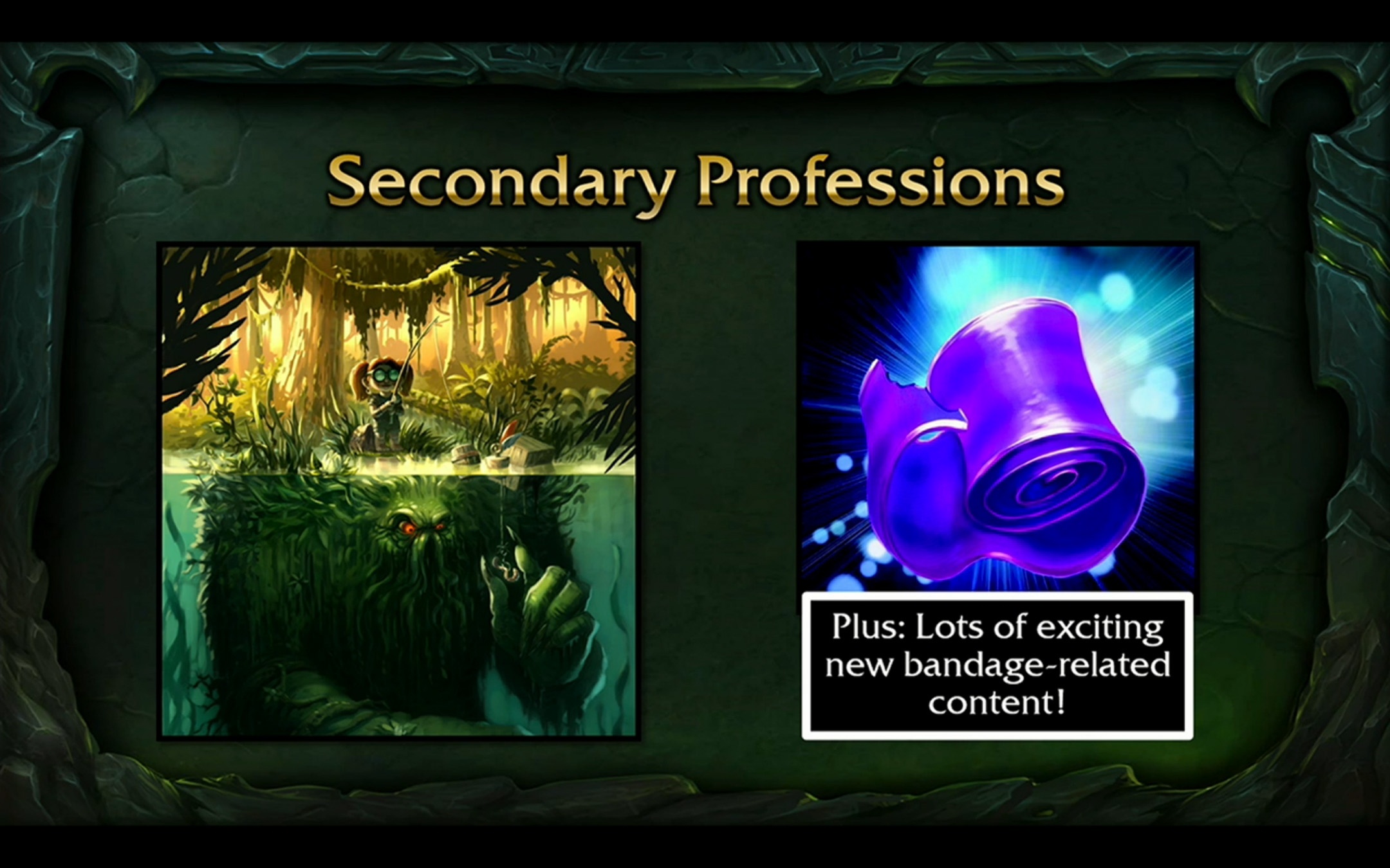 Les métiers secondaires dans Legion ne seront pas abandonnés puisque l'archéologie, la cuisine, la pêche et le secourisme auront également des améliorations pour renforcer l'esprit de chacun des métiers et particulièrement en archéologie et pêche dont Blizzard sont restés particulièrement discrets concernant les nouveautés :