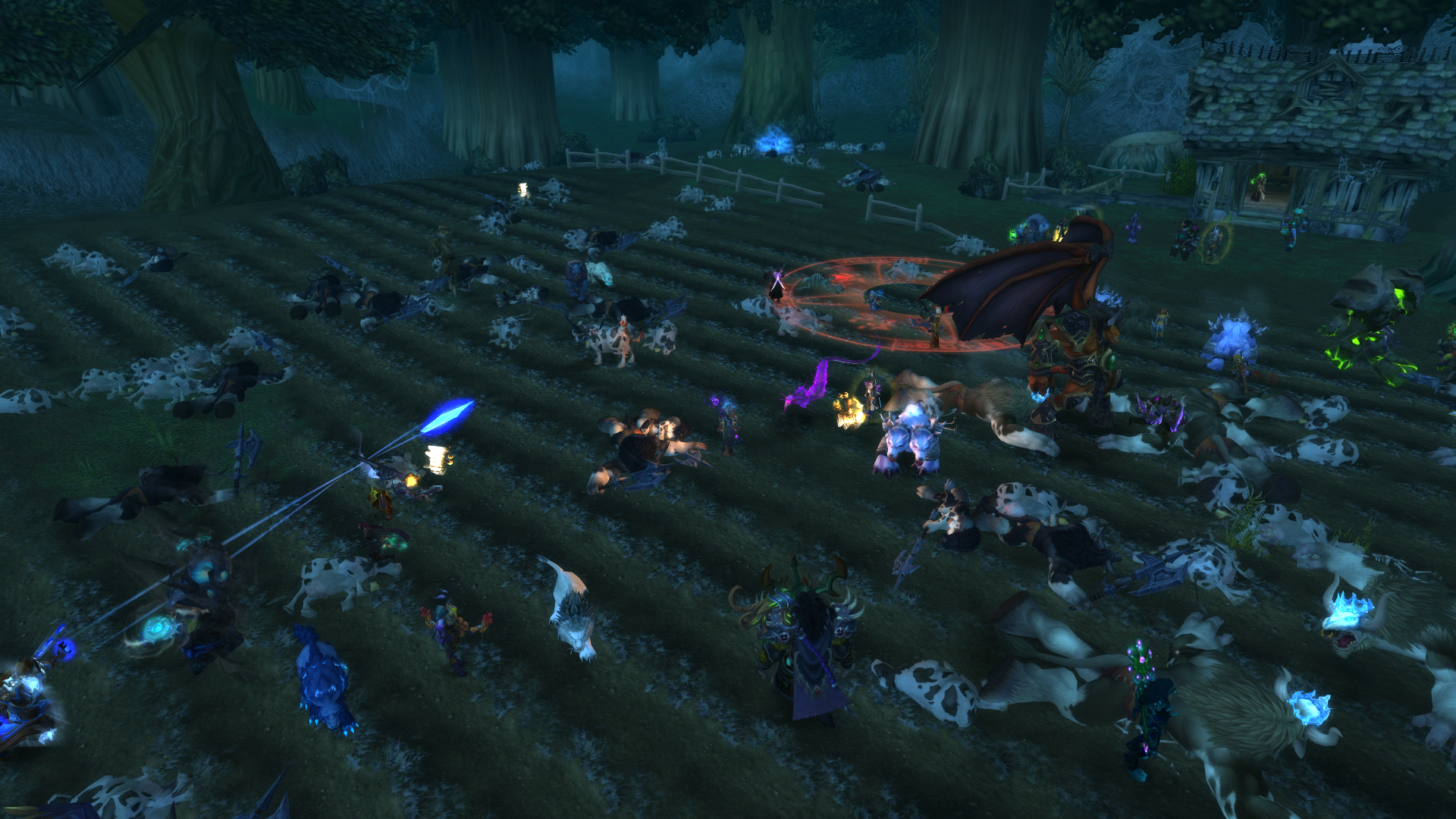 Niveau secret des vaches pendant 5 minutes dans une zone phasée de la ferme des worgens au bois de la pénombre. Cette zone est remplie de vaches de niveau 110 avec le Roi des vaches qui apparaît aléatoirement au cours de cet événement avec plusieurs millions de points de vie et des techniques phares de son histoire dans Diablo :