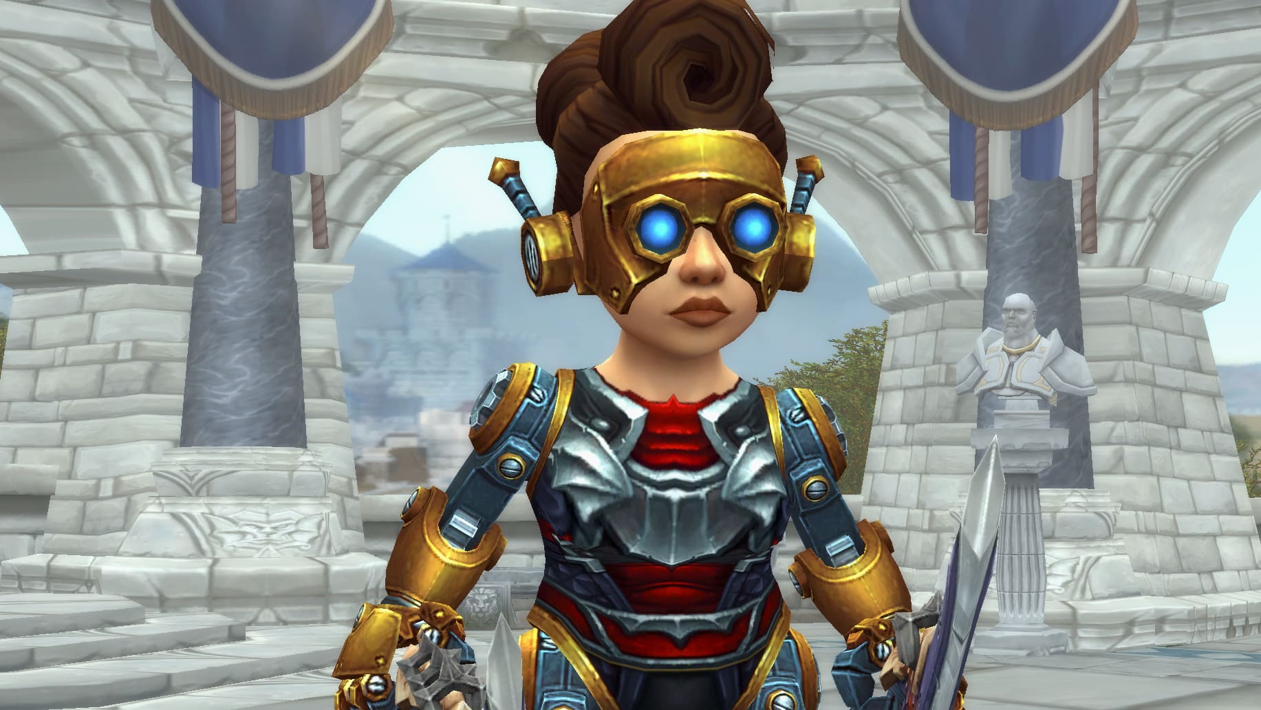 Héritage des Mécagnomes. Cet ensemble d’armure ornemental est spécifique uniquement à cette race alliée. Il est possible d'utiliser le service de transmogrification sans se préoccuper des types d’armure : tissu, cuir, mailles ou plaques.