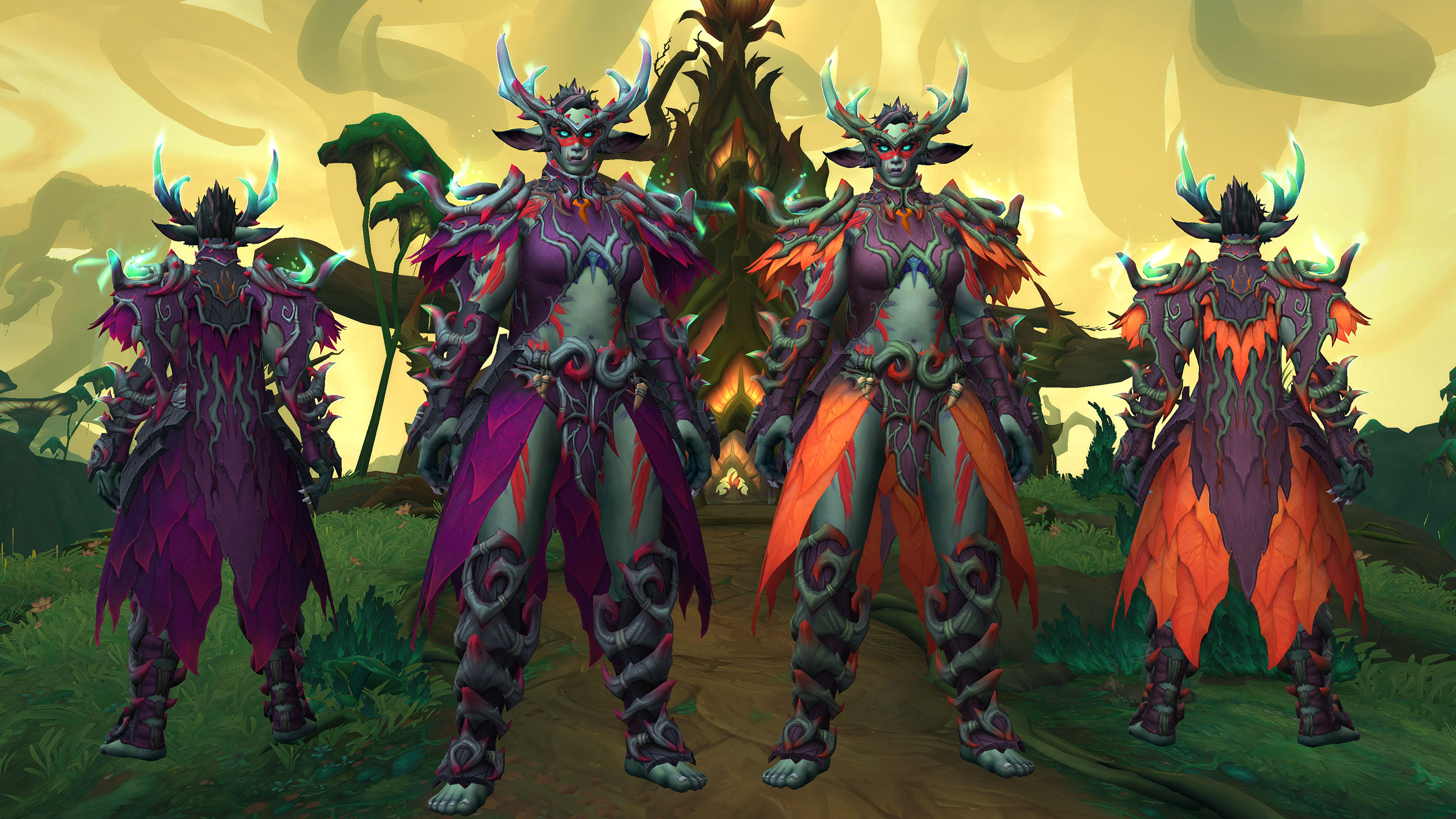 1 ensemble d'armure ornemental avec deux variations qui représente les tribus : Shul'ka (prune) et Har'alnor (orange). Cet ensemble s'obtient par une quête de l'histoire grâce à la progression d'un nouveau personnage Haranir au niveau 50.