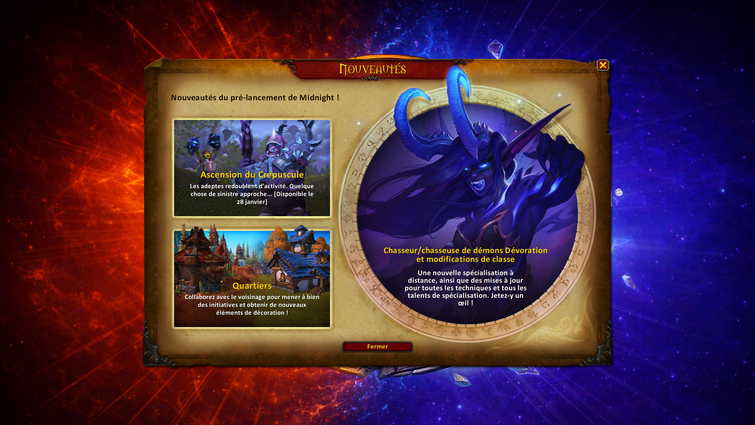 - 21 janvier 2026 : la mise à jour de pré-lancement de Midnight est disponible avec 2 parties de contenu.