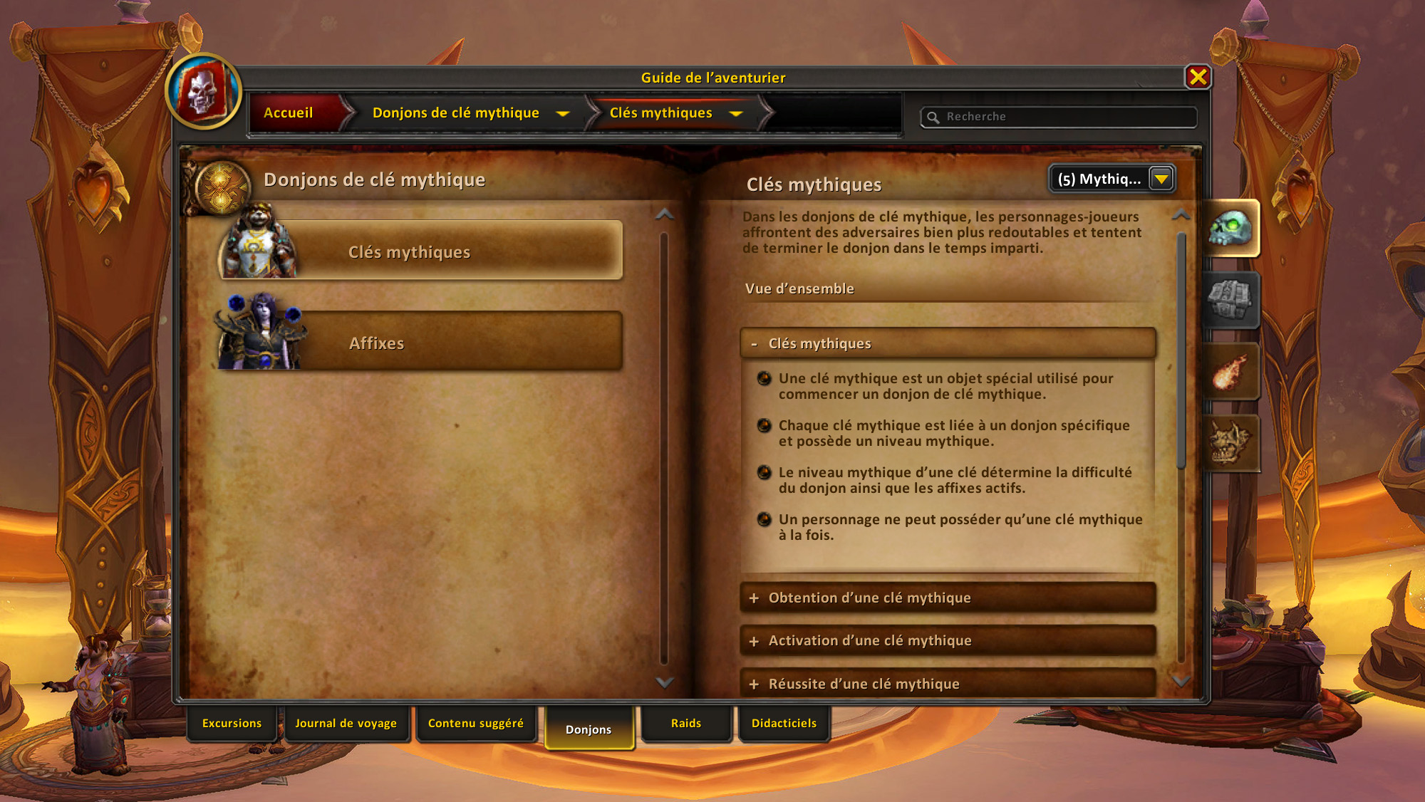 - Extérieur : intégralité du contenu comme les rares, trésors, chasse au savoir, glyphes de vol et réputation.