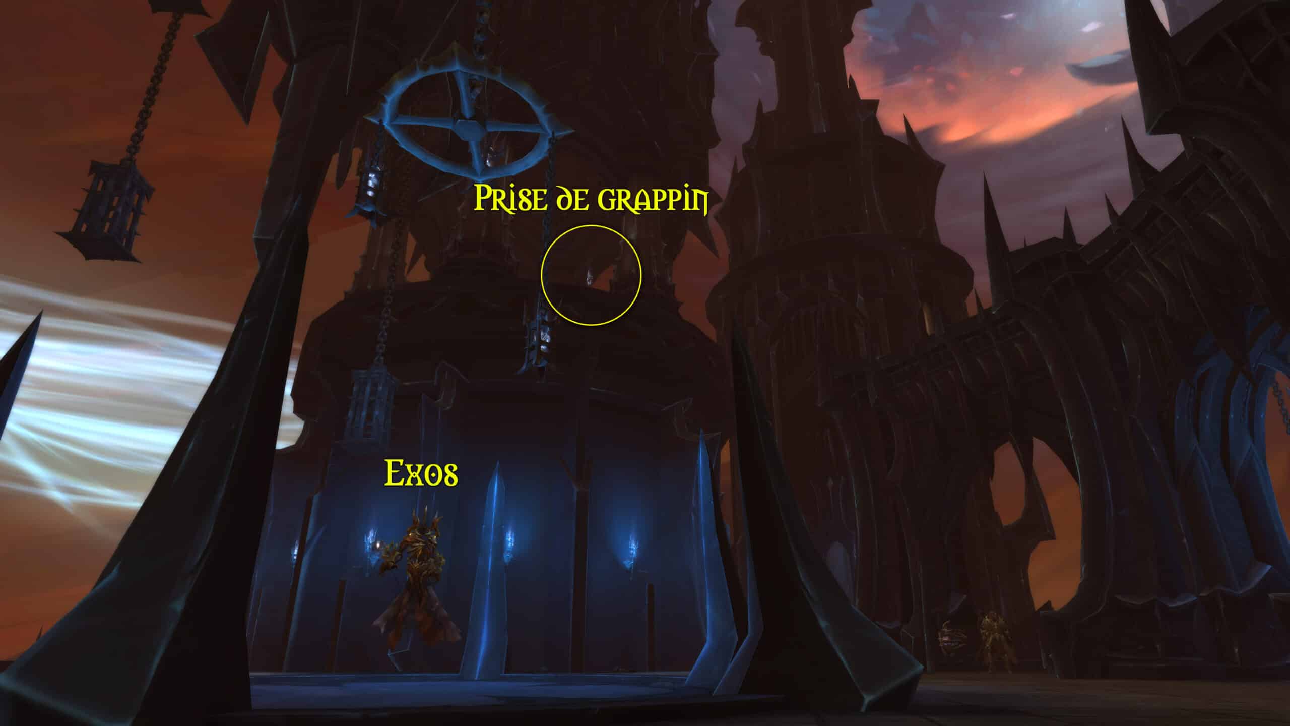 La prise de grappin pour atteindre la forge de l'âme est située sur la plateforme derrière Exos aux coordonnées