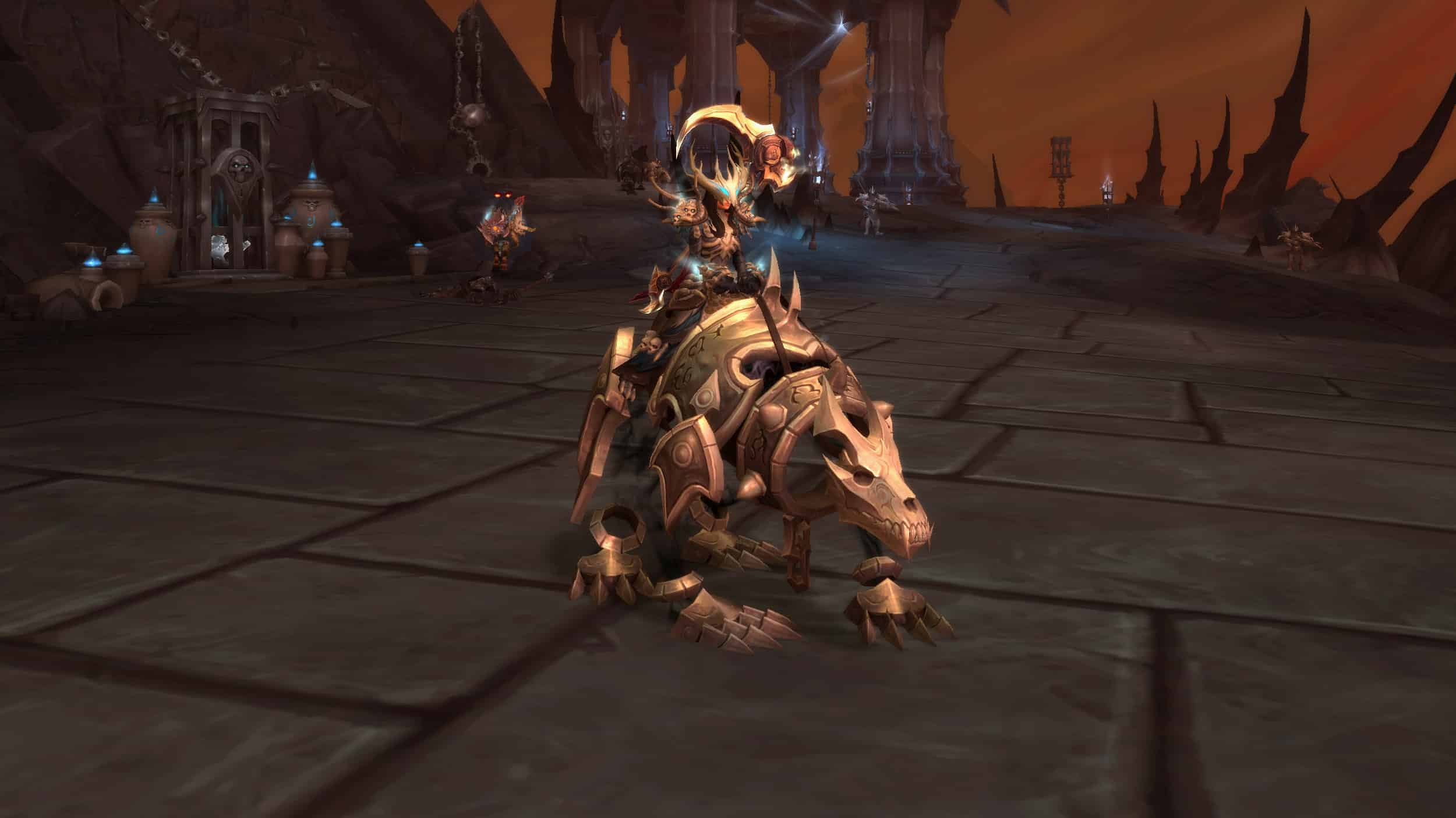 Merci encore! monture obtenue ce jour ? Le plus efficace pour moi pour le farm des Poussière de stygie et Éclisse de stygie aura été la zone Sud des Terriers ç’aura été un peu long et les dernièrs compos se sont faits désirés mais me voilà propriétaire d’un Molosse d’ombre lié qui me permettra de voyager dans l’antre plus librement avec mes rolls en attendant la 9.1 ou le courage éventuel de finir les couloirs??