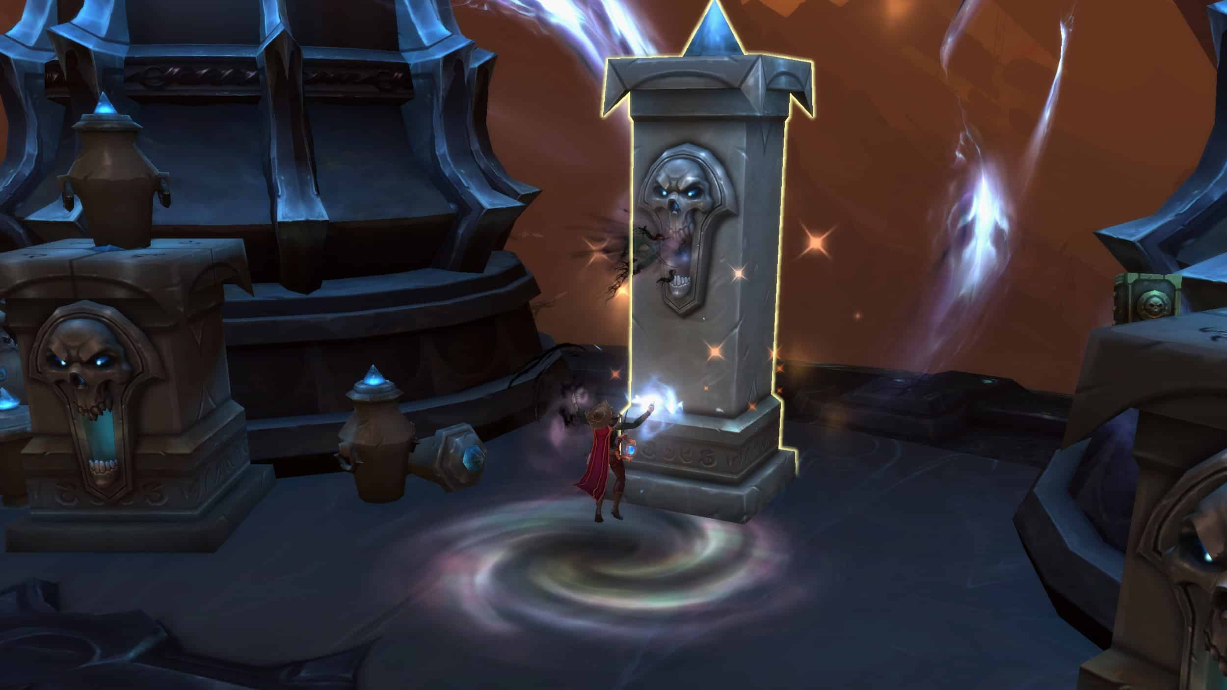 Stèle délabrée. - En cas d'échec, le temps de recharge de l'invocation d'un molosse d'ombre est de 1 minute pour recommencer la séquence.