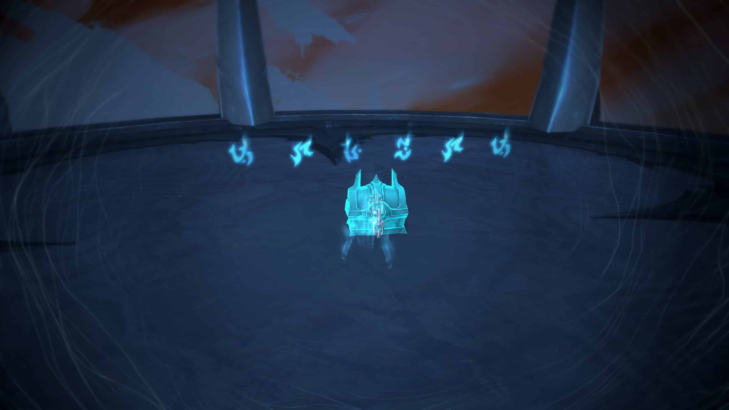 Appel de la domination par la combinaison des trois gravures de domination : souffrance, deuil et chagrin. Une fois que la créature rare est invoquée, un portail s'ouvre pour atteindre la plateforme supérieure.