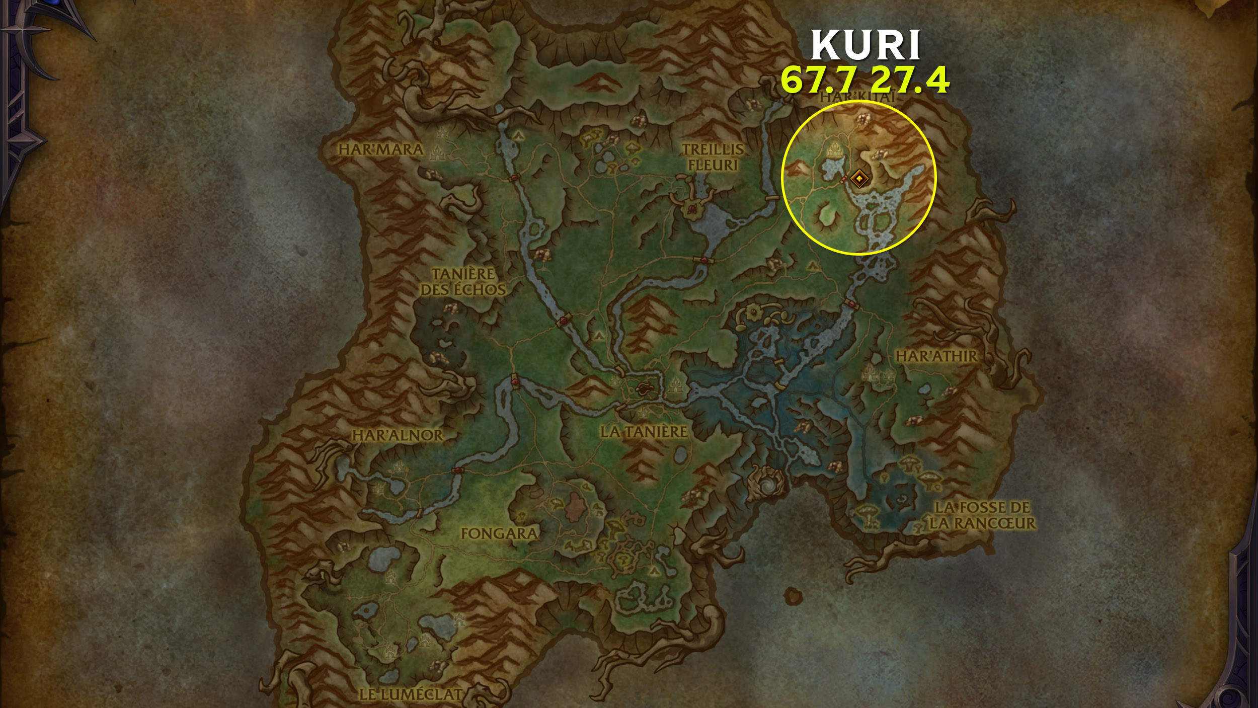 Éclat céleste mystérieux (lié au bataillon). Une fois que vous avez 500 objets dans l'inventaire, vous devrez retourner à Kuri au village de Har'kuaï pour déclencher une nouvelle ligne de dialogue. Cette option permet de faire une offrande à Aln'sharan qui parcours la région pour obtenir cette monture unique.