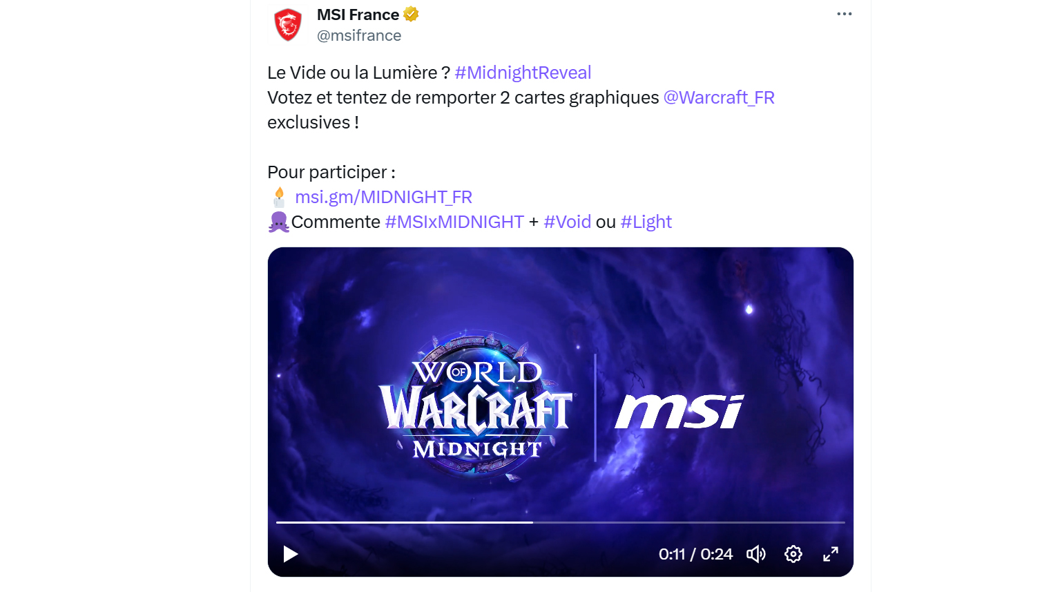 - Exprimez votre choix sur les réseaux sociaux de MSI avec : #Void ou #Light et #MSIxMIDNIGHT.