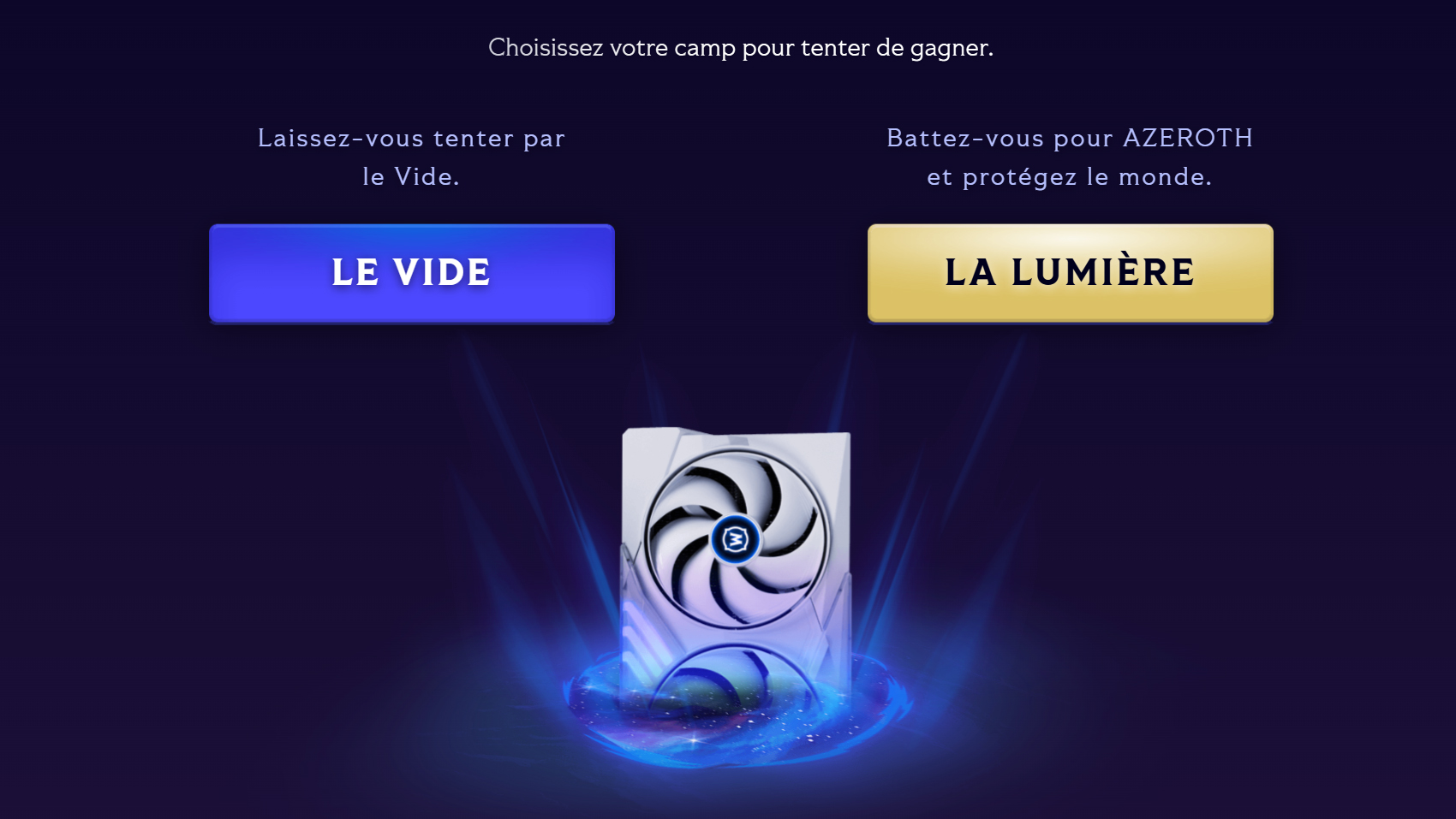 - Rendez-vous sur https://msi.gm/MIDNIGHT pour choisir votre camp entre Vide ou Lumière.