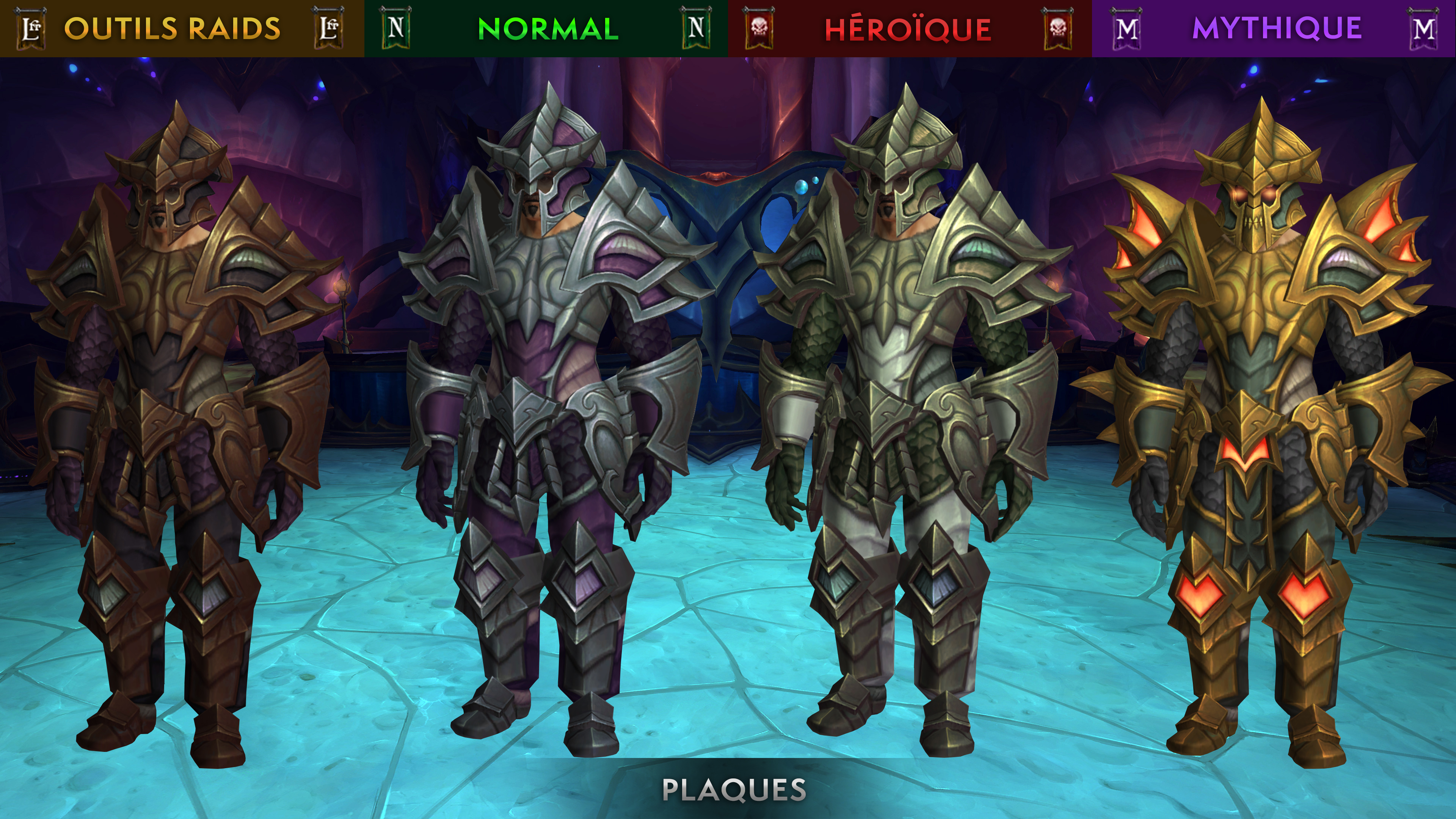 - Le thème des ensembles d'armure du raid est basé sur les profondeurs de Nazjatar et des nagas