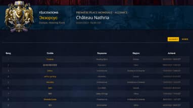 Vous pouvez découvrir le classement des 100 meilleures guildes de chaque faction pour le château Nathria :