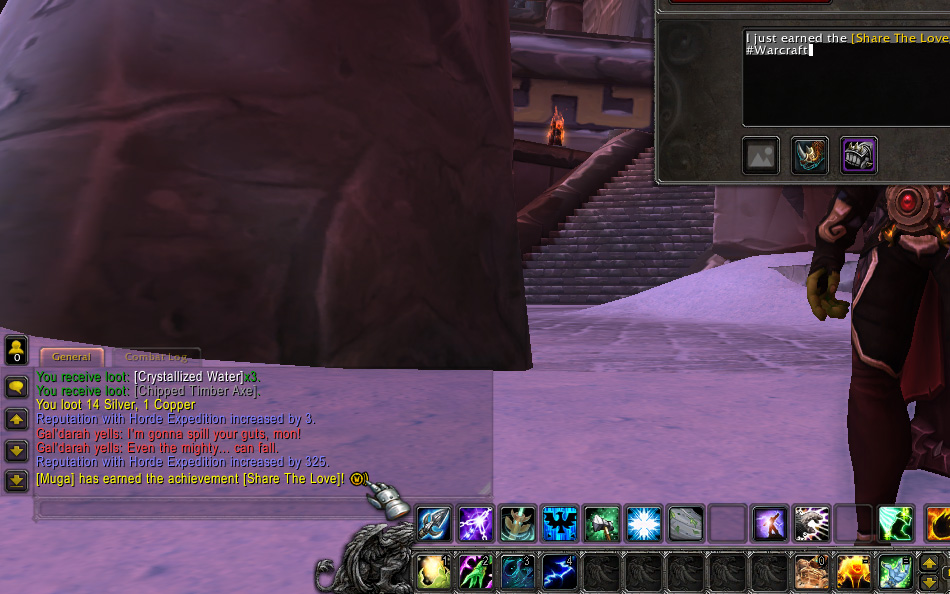 La nouvelle fonctionnalité inédite et parfois insolite pour certains de la prochaine mise à jour 6.1 de Warlords of Draenor est désormais effective sur les serveurs de tests, et je ne pouvais pas m'empêcher de tester cette fonctionnalité. Lorsque votre compte Twitter est lié à Warcraft, la commande /partager permet d'ouvrir une fenêtre spéciale pour partager vos événements comme votre dernière capture d'écran, votre dernier haut-fait, le dernier butin récupéré et avec ceci un message personnalisé. Notez toutefois quelques problèmes de délais où de résolution d'images à l'heure actuelle qui seront corrigés à l'avenir.