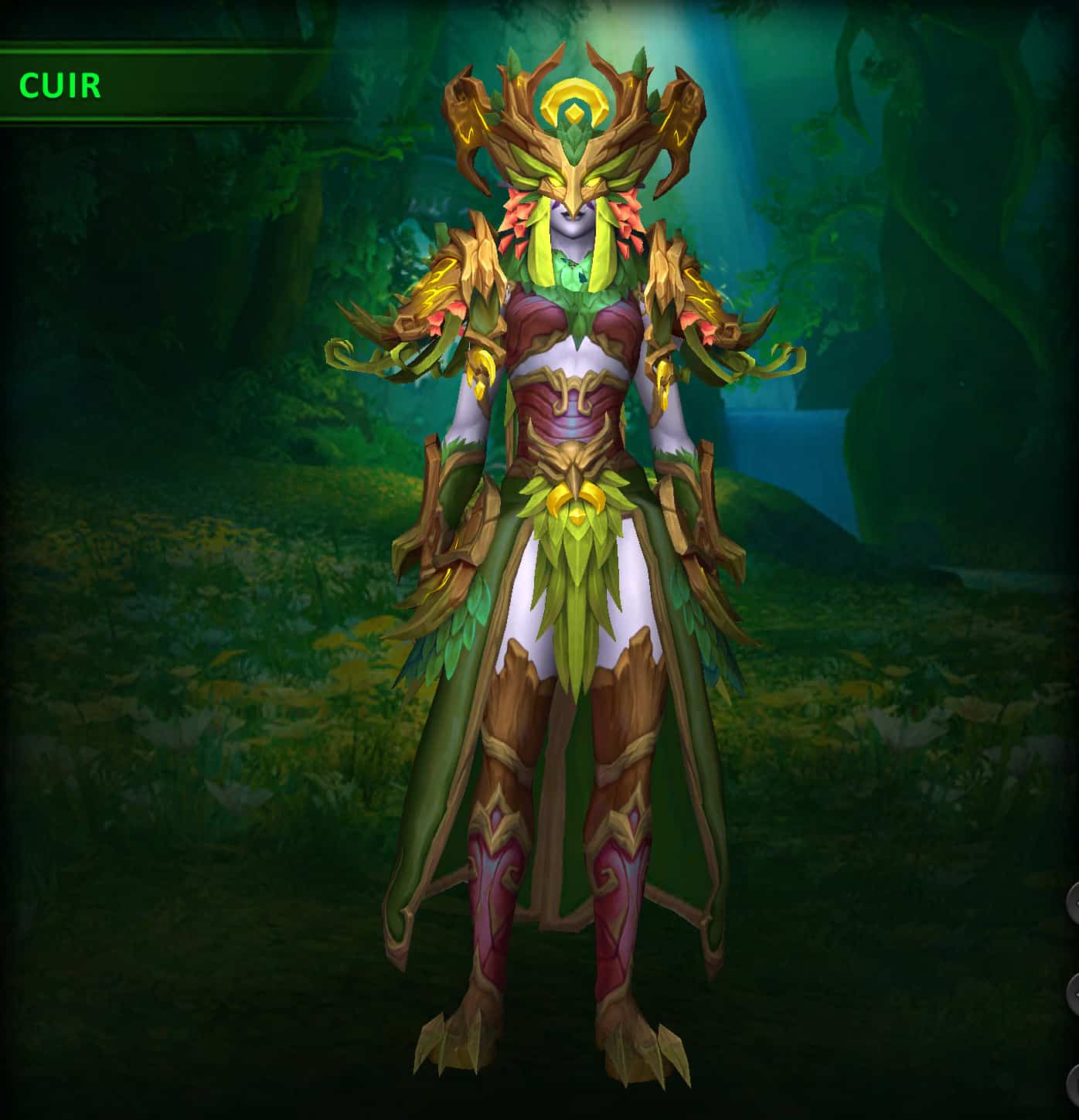 La mise à jour 10.2 : Gardiens du Rêve de Dragonflight permet de se rendre au royaume onirique du Rêve d'émeraude jusqu'à l'Arbre-Monde, Amirdrassil, pour repousser les envahisseurs dans cette nouvelle aventure. Le Rêve d'émeraude contient une tonne d'activités en extérieur pour récupérer plusieurs pièces d'équipement afin d'améliorer la puissance du personnage. Ces pièces d'armure permettent de créer un ensemble d'armure ornemental avec une apparence sur la Nature et de la Vie en 5 teintes de couleurs différentes en fonction du mode d'obtention : quêtes, butin, événements et aspirant.