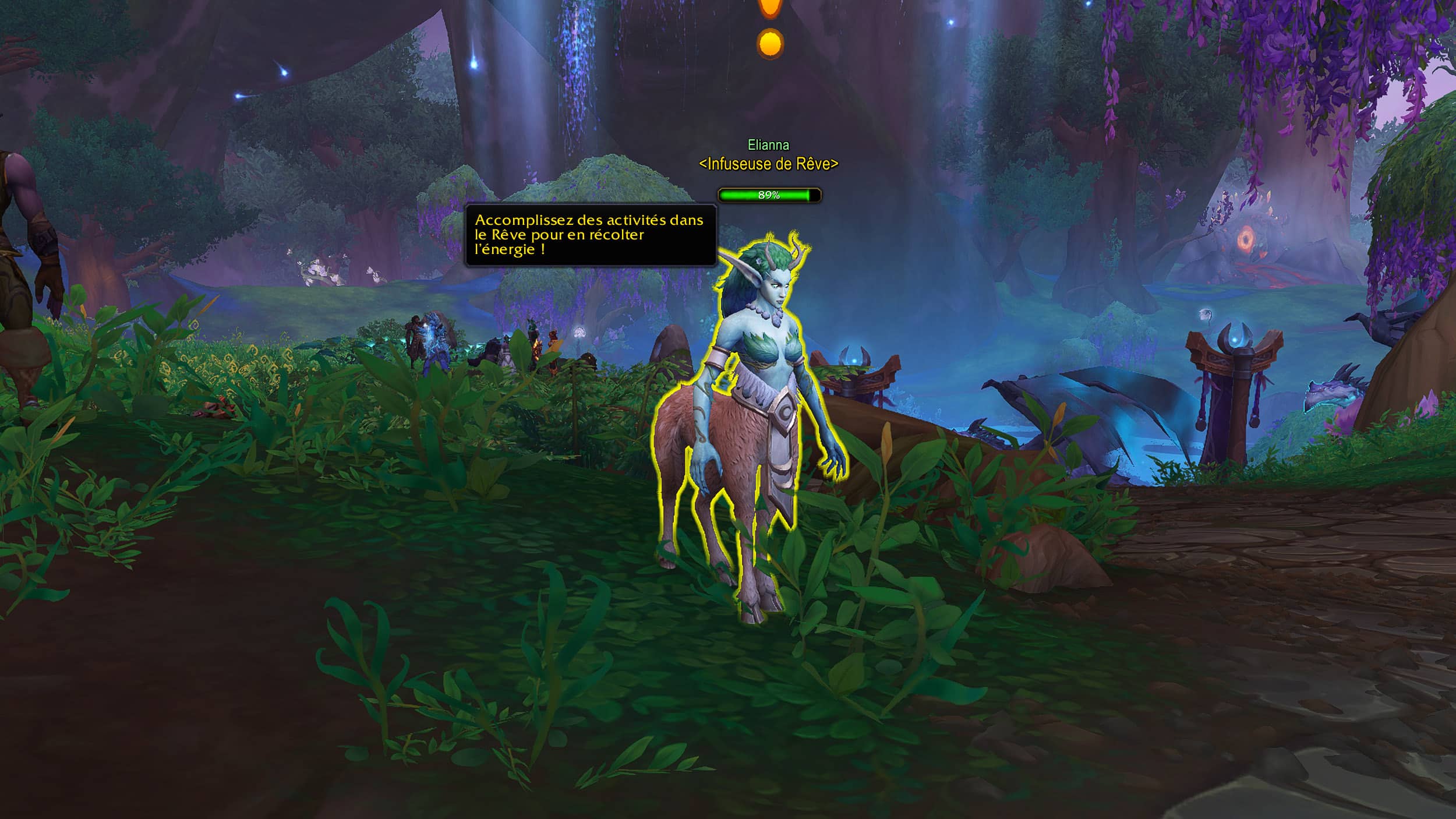 Vous pouvez installer le WeakAuras pour suivre la progression de l'énergie du Rêve récupérée par les activités en extérieur.