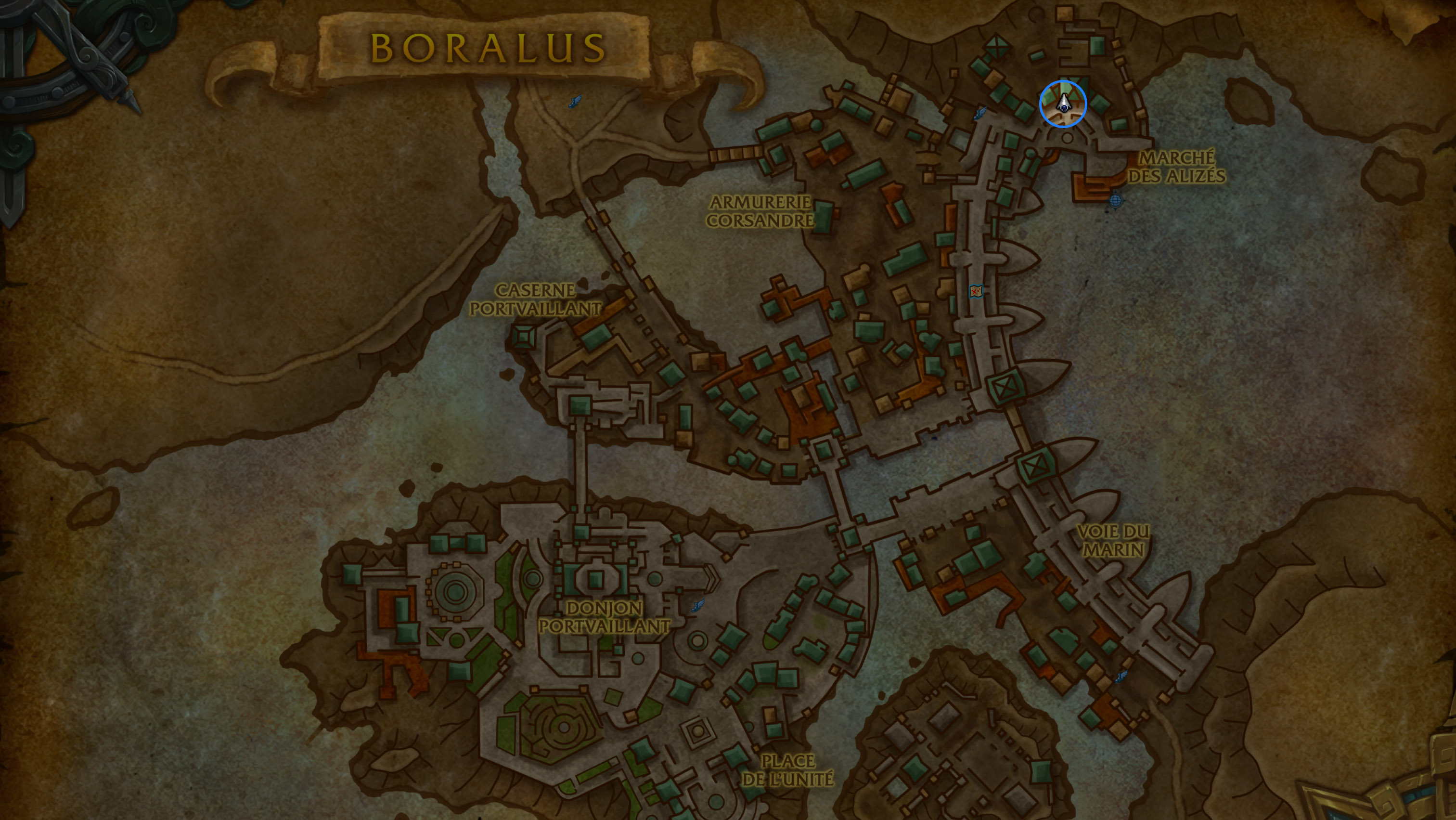 Alliance : Marché des Alizés devant l'auberge à Boralus (Kul Tiras) aux coordonnées 72.8 13.9