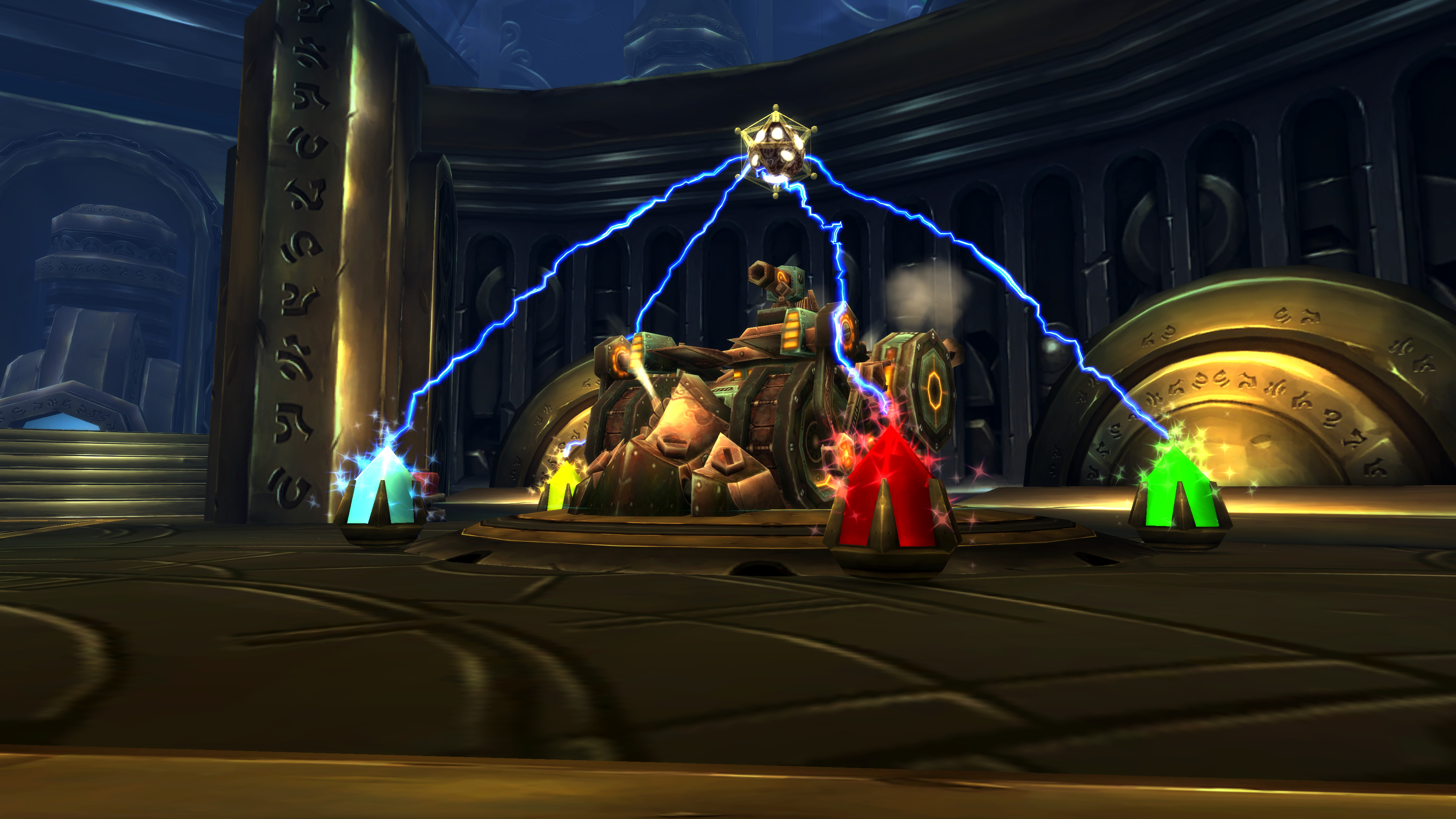 Mimiron : Vous n'avez qu'à placer l'Étincelle du tonnerre sur la console que voici et Hati sera de retour en un éclair !