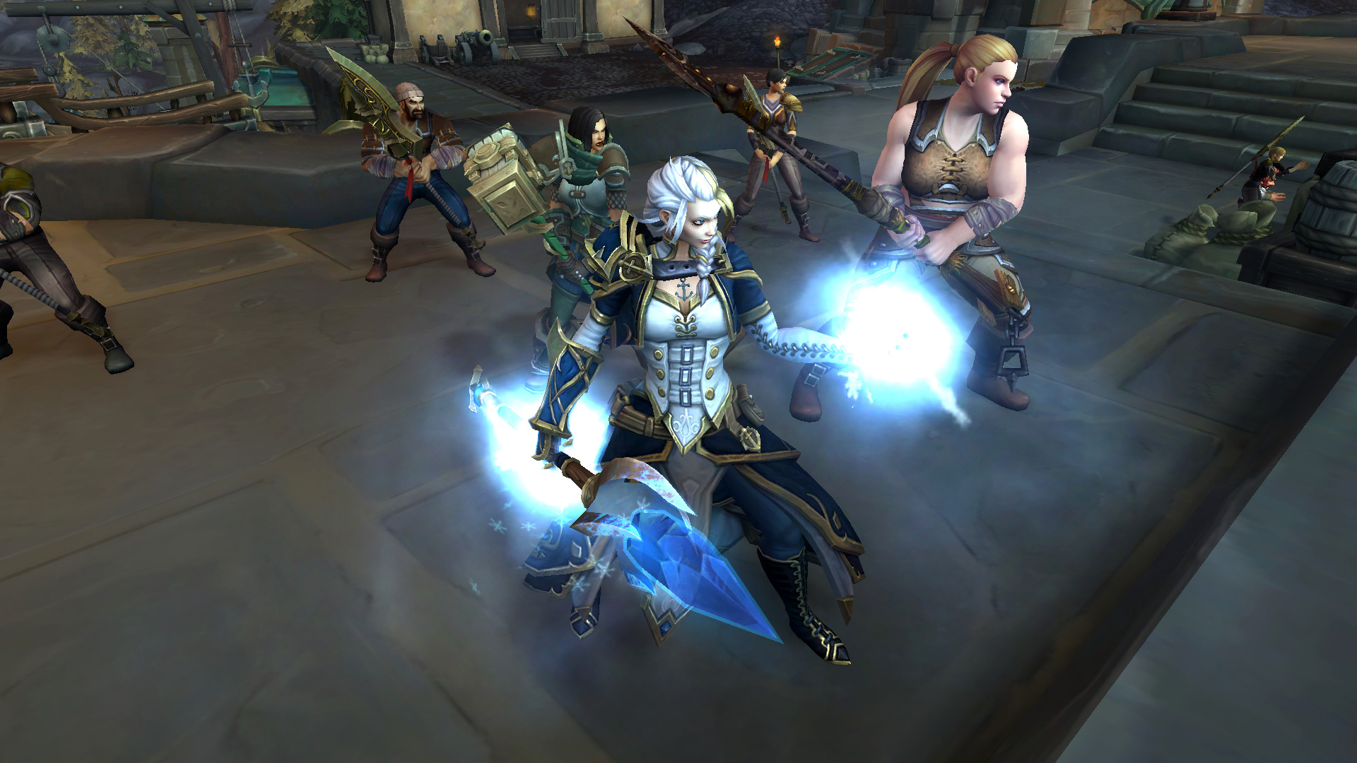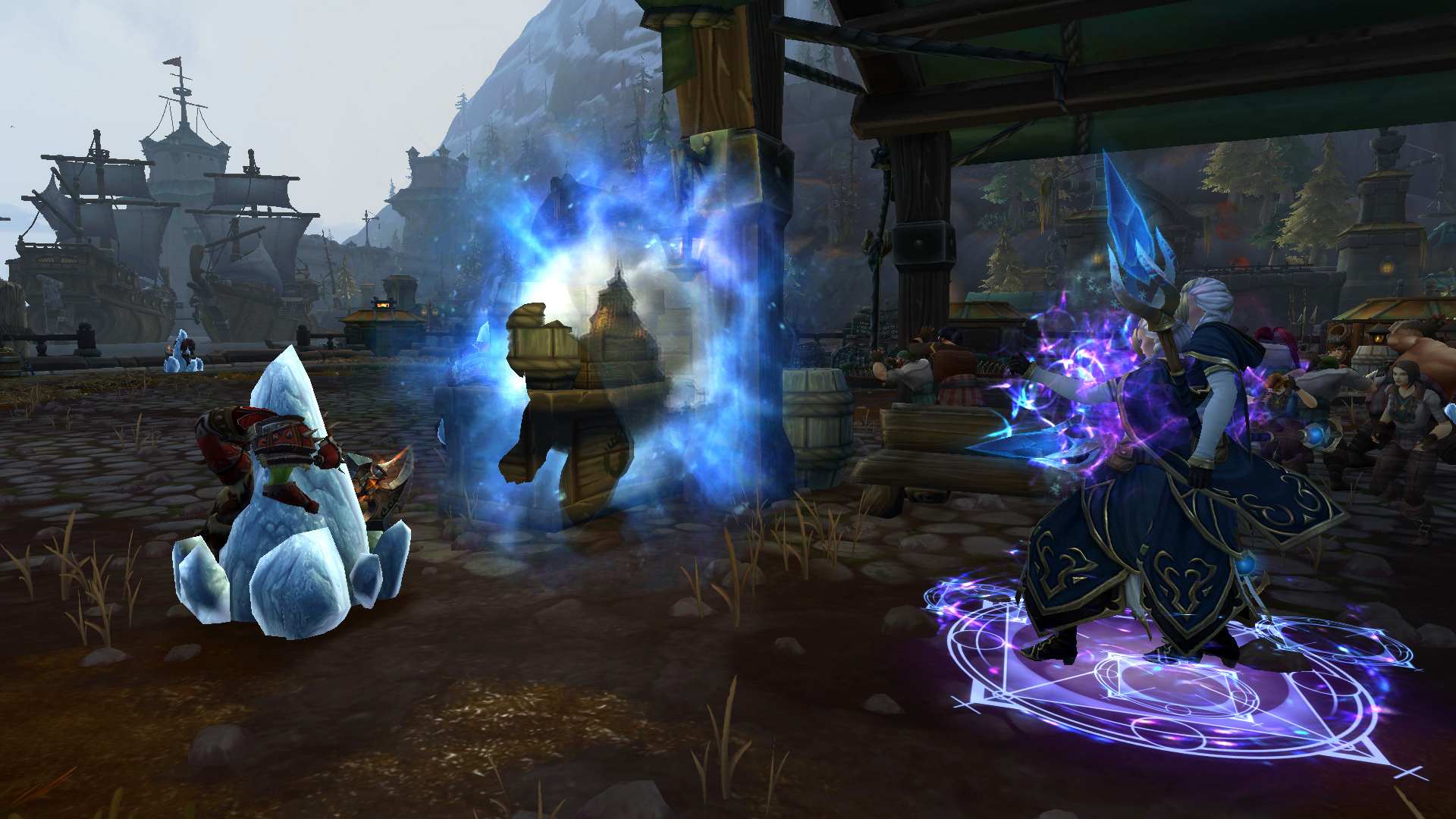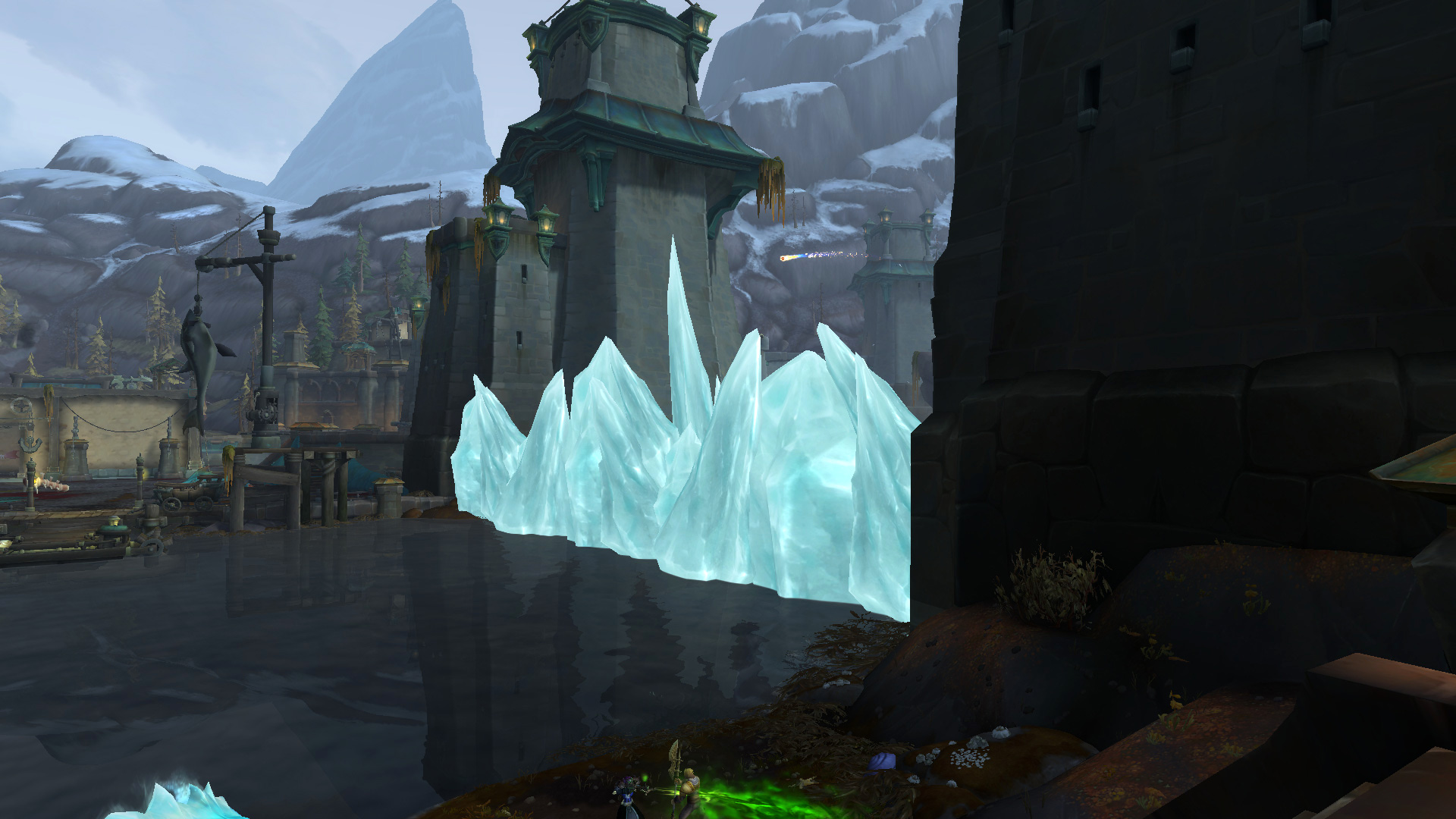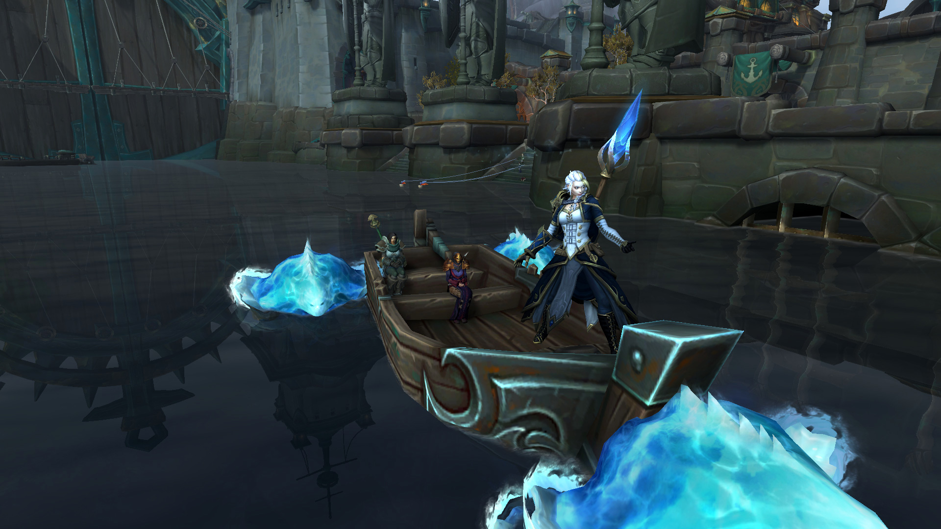 Jaina Portvaillant a utilisé ses capacités de Givre pour tenir la Horde à distance de la bataille. La flotte navale de la faction adverse a été également anéanti par des harpons enchantés pour empêcher d'entrer dans la rade de Tiragarde jusqu'au domaine Norgwinton. Cette opération s'est soldée avec succès pour reprendre le contrôle le quai du Trident avec tour de force offert :