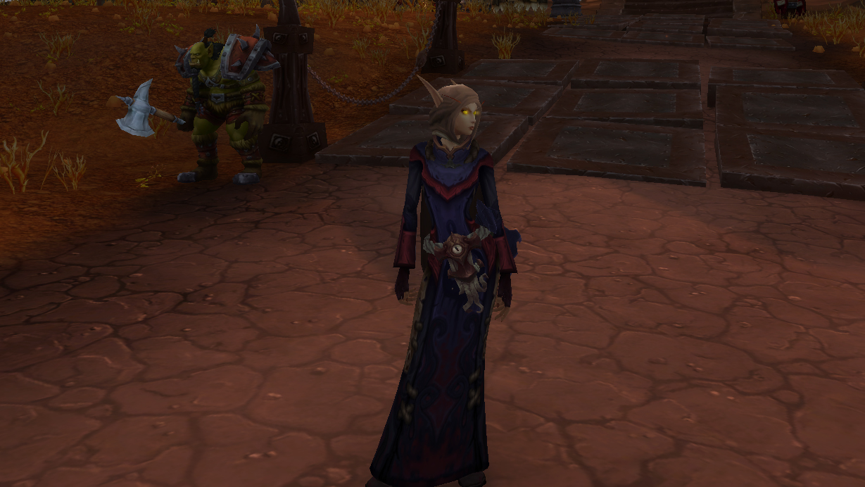 Cape usée si vous prêtez allégeance au guerrier orc, une suite de quêtes devra être réalisée pour retrouver les traces du Haut Seigneur Saurcroc. La Forestière-sombre Alina, à bord de la complainte de la Banshee au port de Zuldazar, vous signale que la Dame Noire a besoin de l'aide de la Horde par