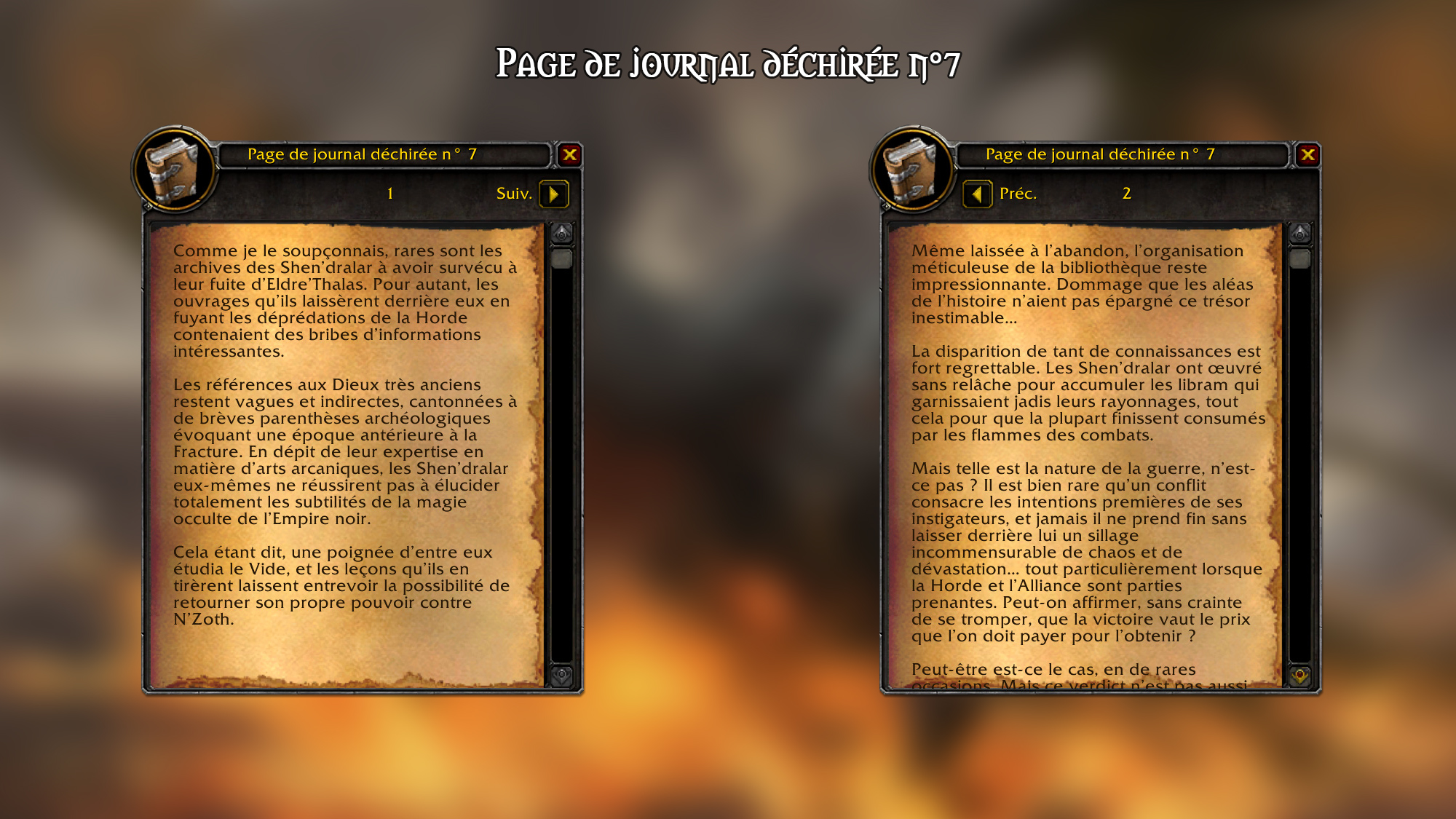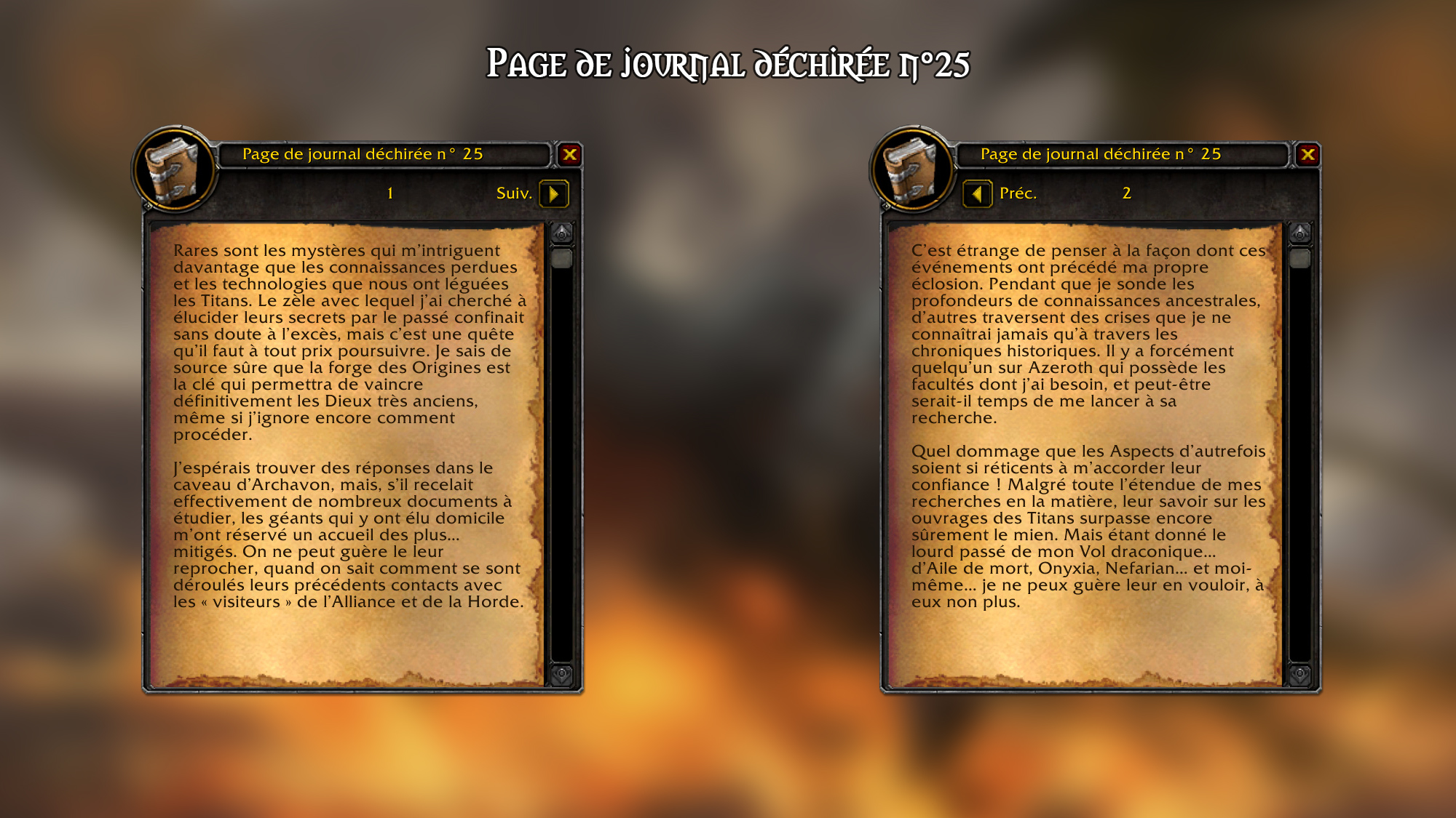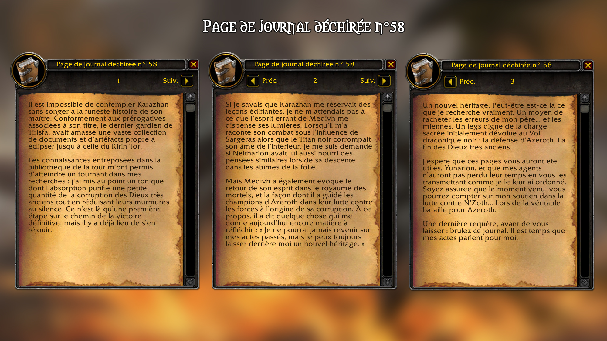 - 1 page de journal déchirée d'Irion à chaque étape terminée de cette suite de quêtes