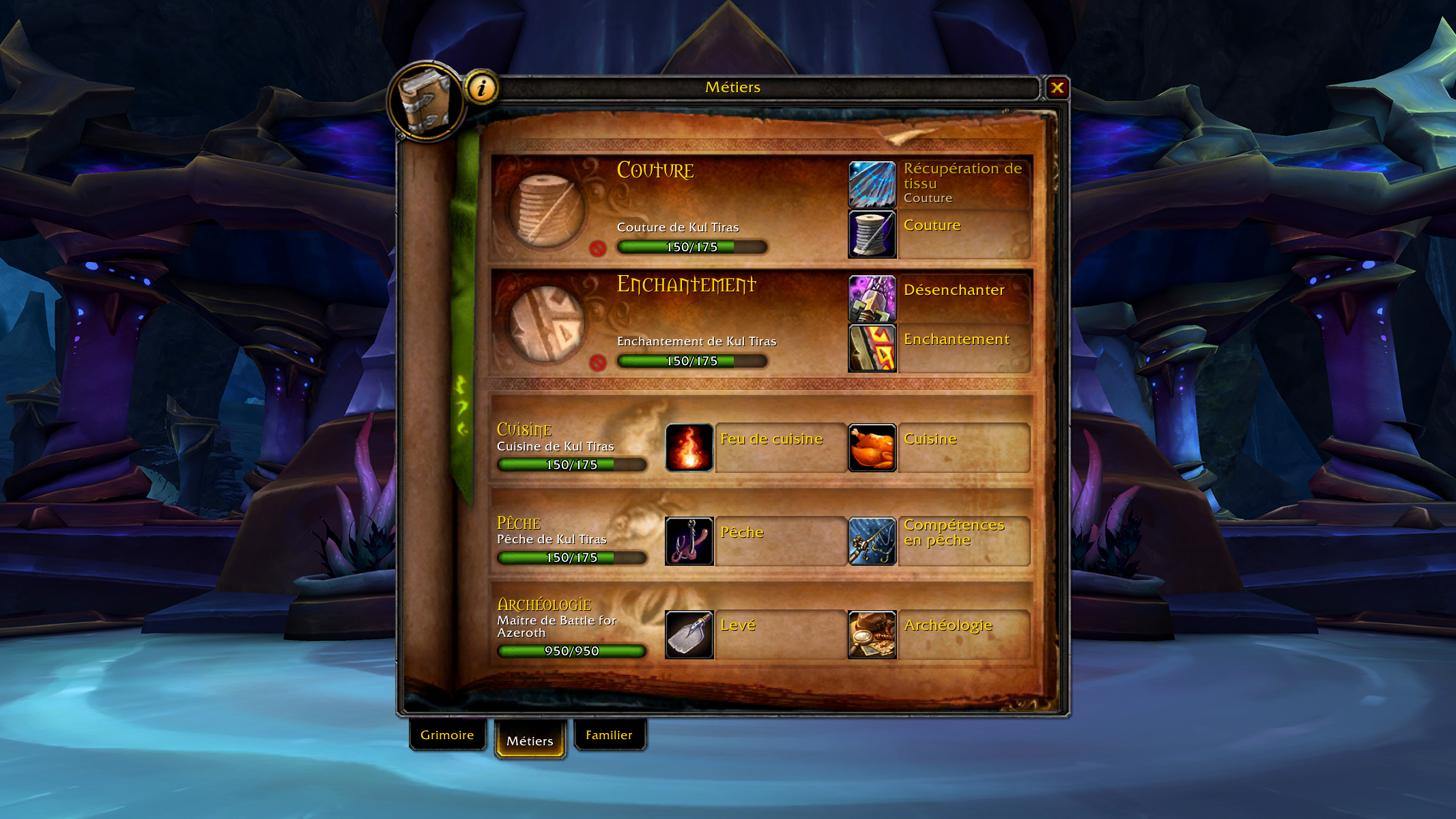 - La compétence de métiers de Kul Tiras et Zandalar est augmentée à 175 (au lieu de 150)