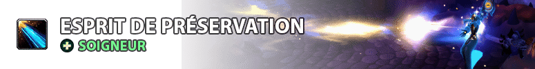 ACTIFVous canalisez un rayon d'énergie vers un allié, ce qui lui rend 112 319 points de vie en 2,6 s. Les autres alliées touchés par le rayon récupèrent 1809 points de vie toutes les 0,6 secondes. Confère une charge d'Esprit dévoué à chaque fois que la cible principale est soignée par Veille de préservation. (Recharge : 1 minute)