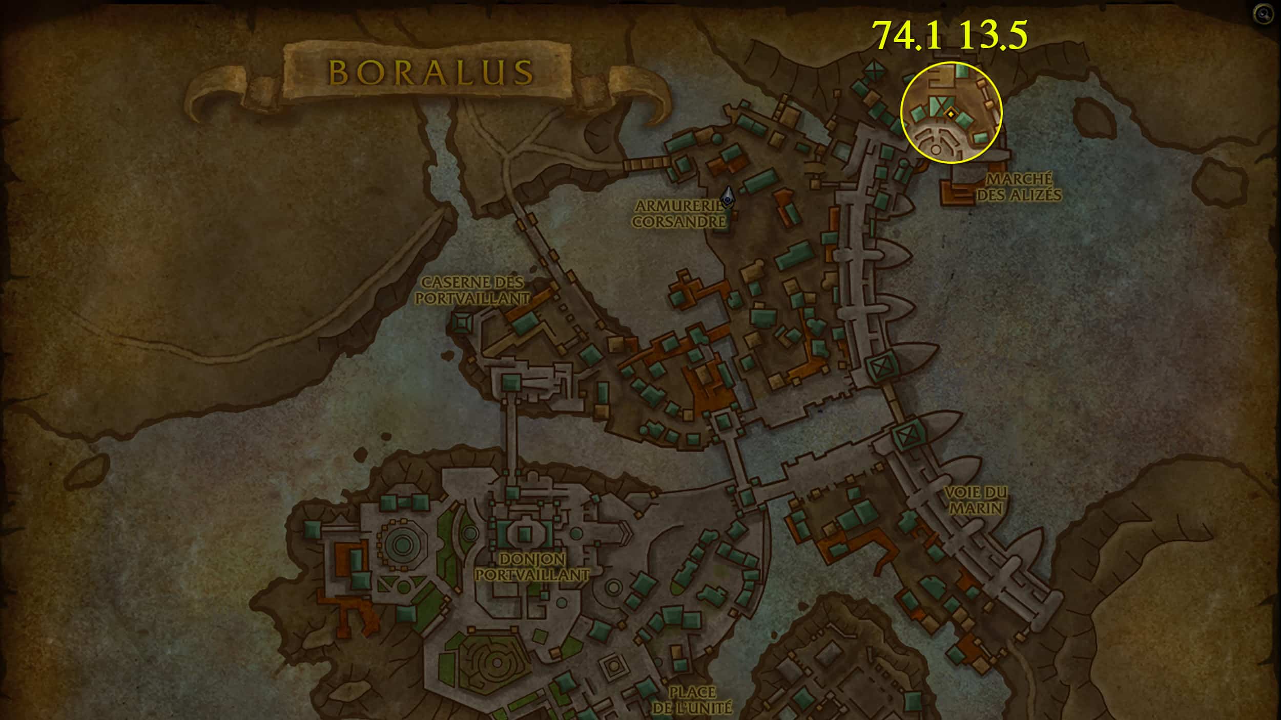 Alliance : le tortollan Kiko est situé à l'Auberge du Nid douillet au Port de Boralus de Kul Tiras. (