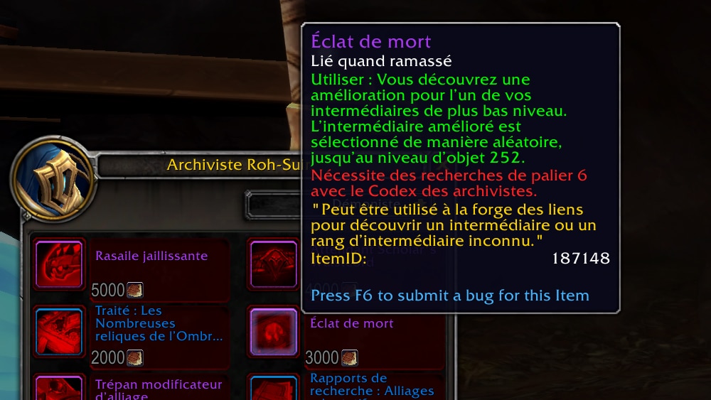 Stygie auprès de Ve'nari au cœur de l'Antre par la réputation d'amitié « Bienveillant ». De plus, la mise à jour 9.0.5 a ajouté des intermédiaires d'endurance et finesse à travers le château Nathria au maximum du niveau d'objet.