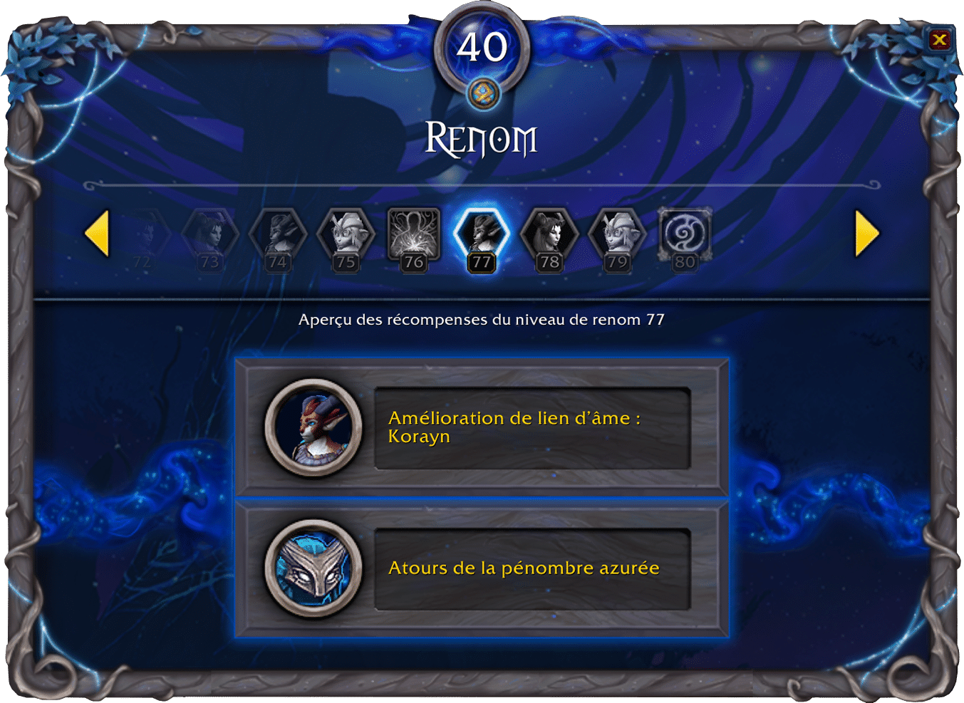 Vous pouvez retrouver tous les nouveaux avantages pour le niveau de Renom 41 à 80 de la mise à jour 9.1 de Shadowlands.