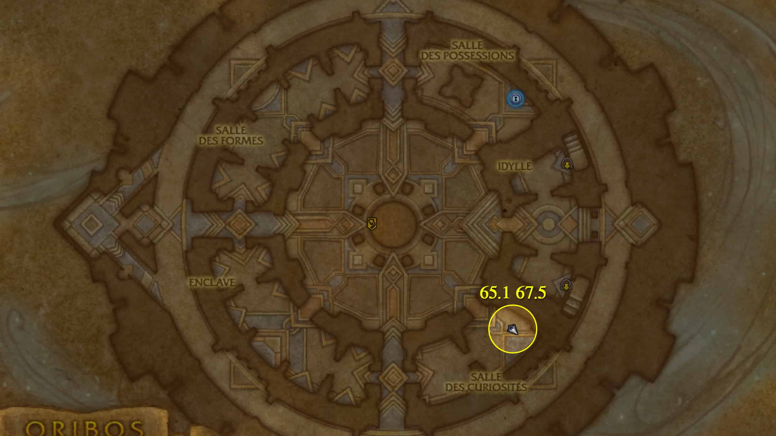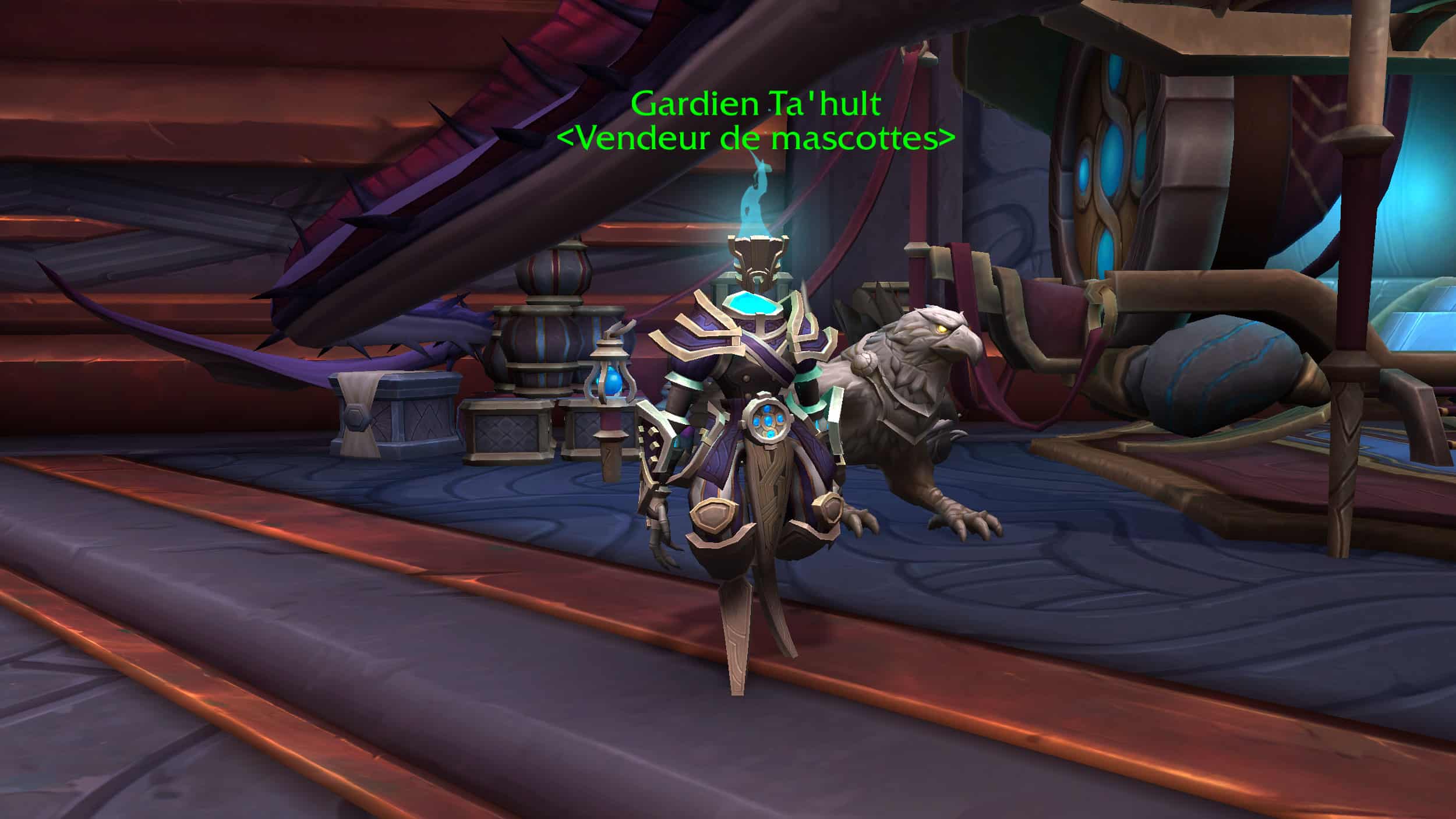 Le gardien Ta'hult est situé à Oribos, capitale de l'Ombreterre, à la salle des curiosités aux coordonnées